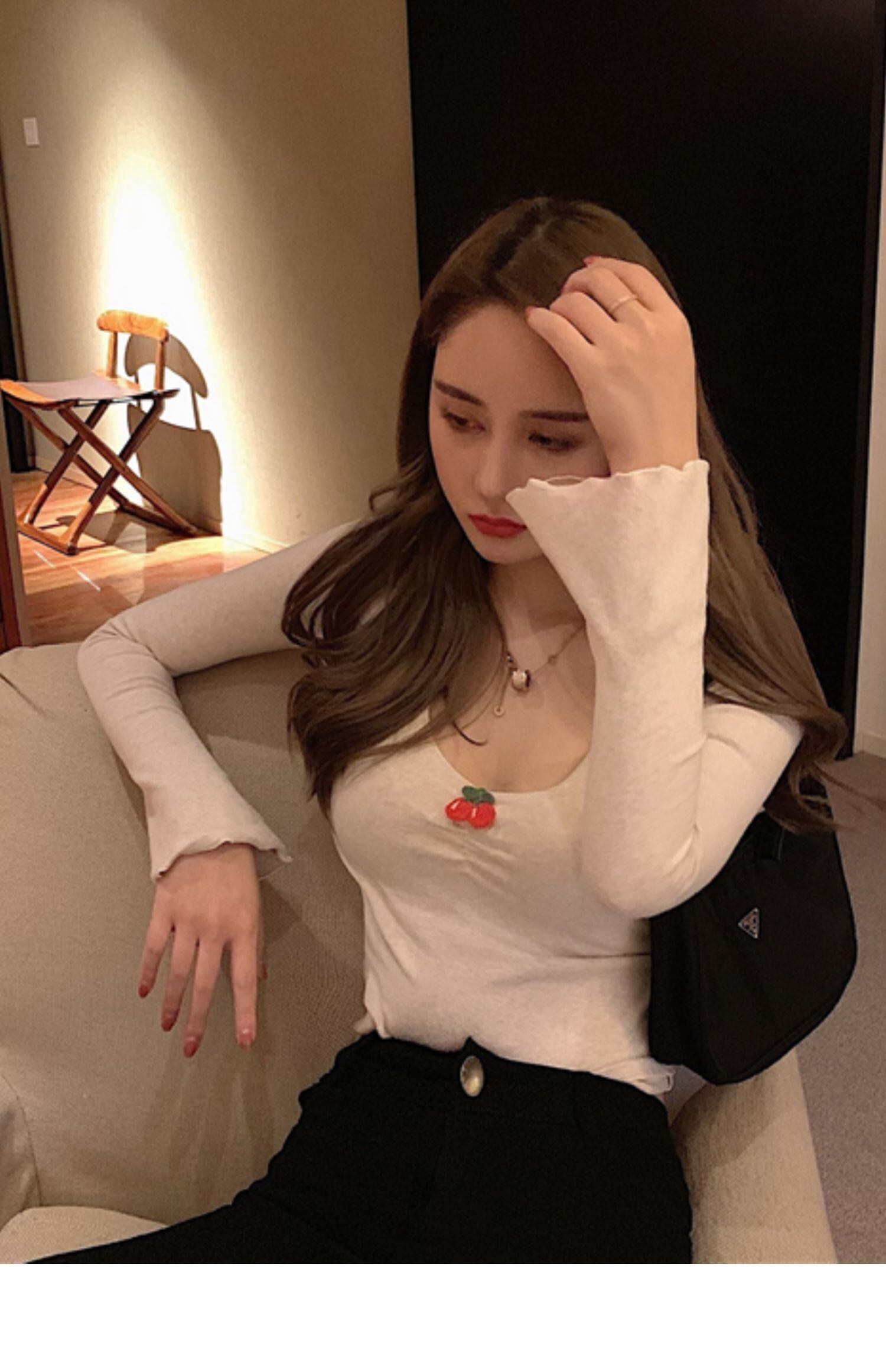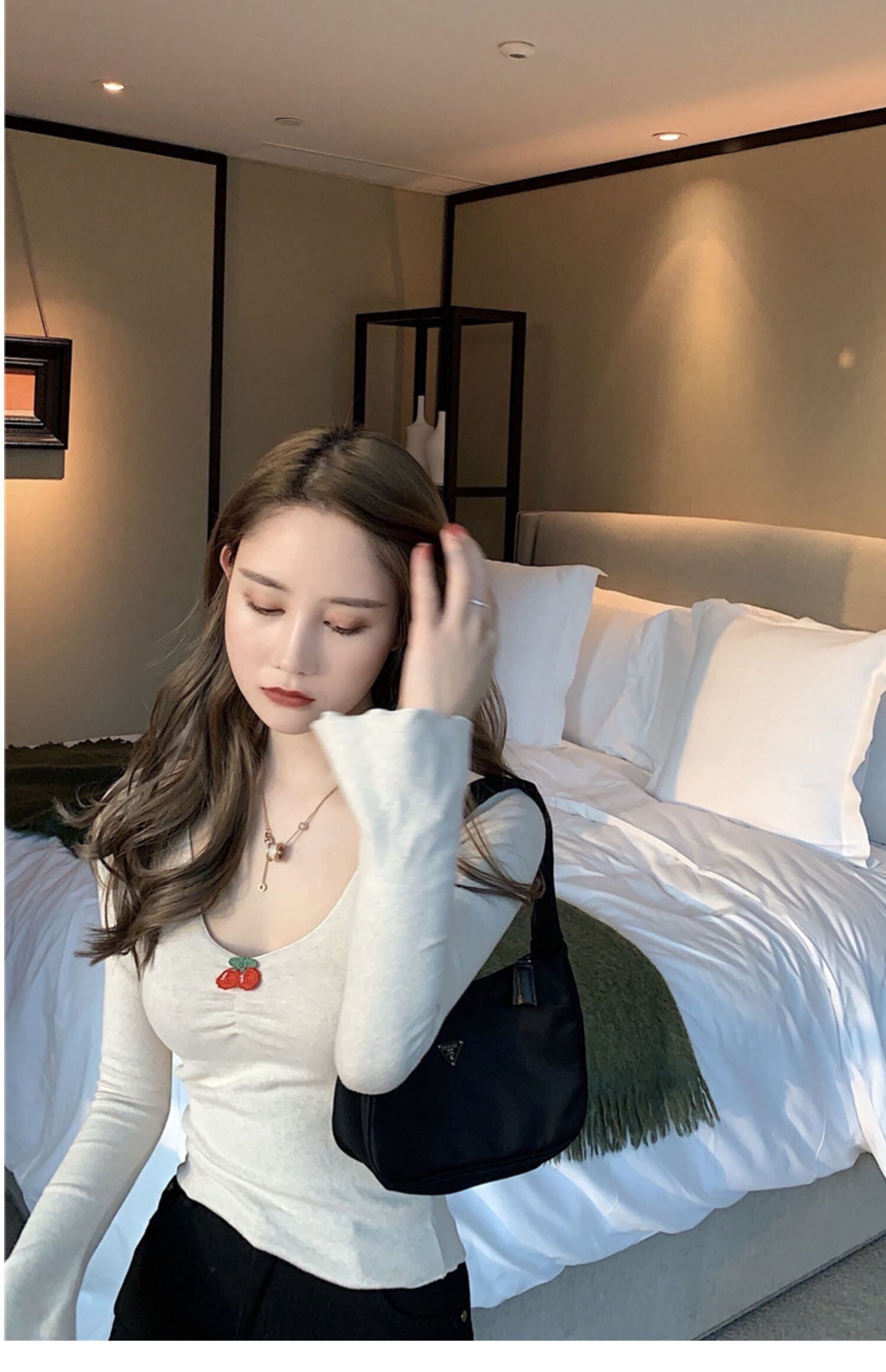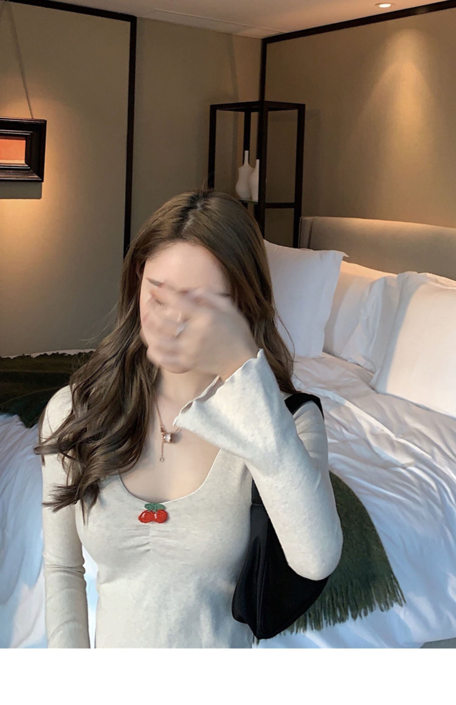 スプリングVネックスリムTシャツ スリーブトップス レディーススタイル 春物 ドラファッションホール8482232547