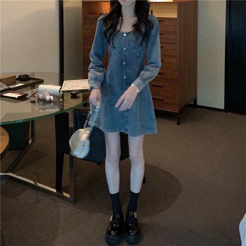オータムウィンタースタンダードウェストドレス スリムハイウェストAラインスカート ロング レトロ 秋物 冬物 ドラファッションホール62095325596
