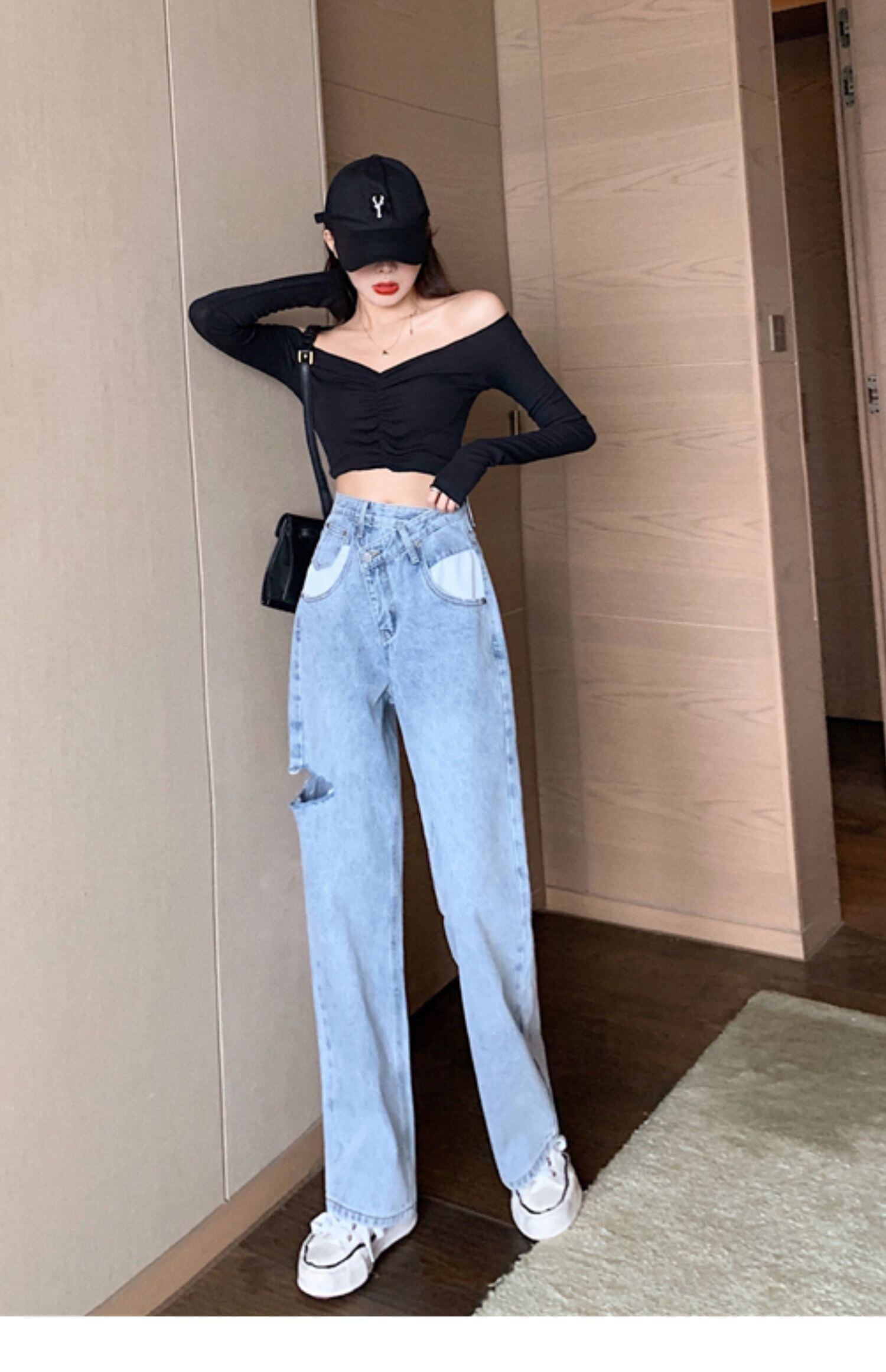 スプリングジーンズ スタンダードハイウェストウェストルーズ レトロ レース 春物 ドラファッションホール81380845609