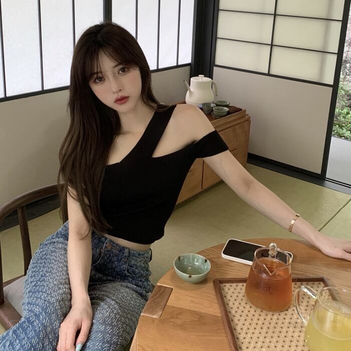 サマースタイルホルターショートトップス ストレッチレディース エラスティック 伸縮 夏物 ドラファッションホール7183509625