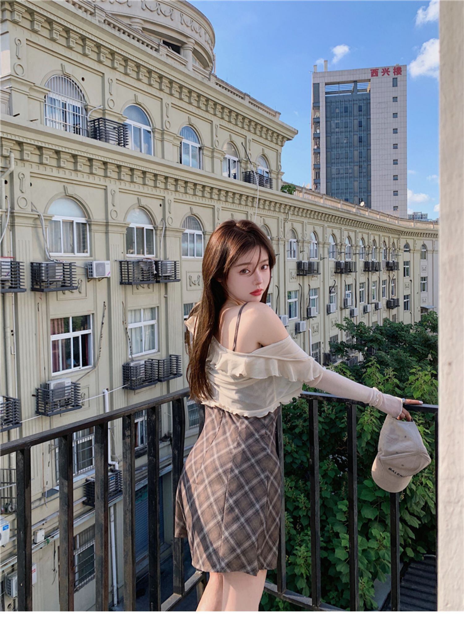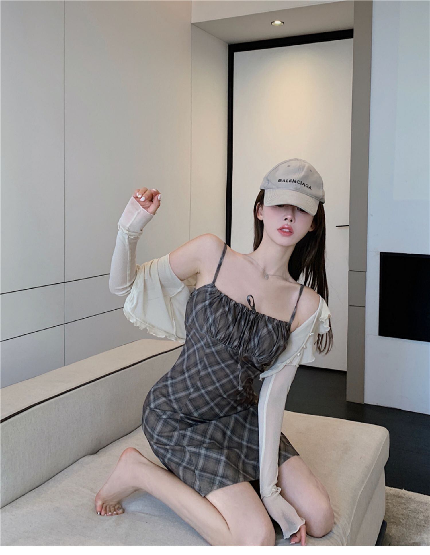 色:シャンパンカーディガン,コーヒー色のドレス