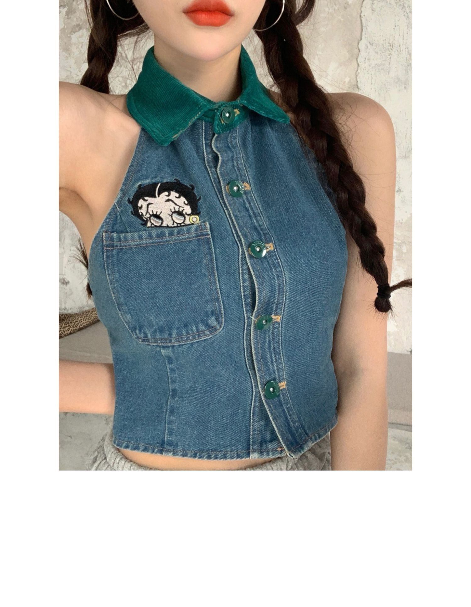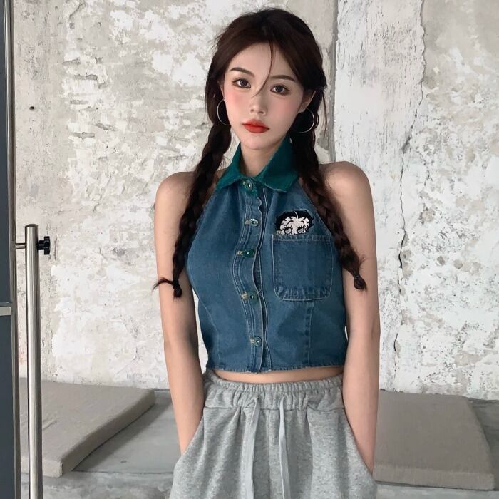 サマースタイルホルタートップス ショートレディース レッド 刺繍 夏物 ドラファッションホール21798746178