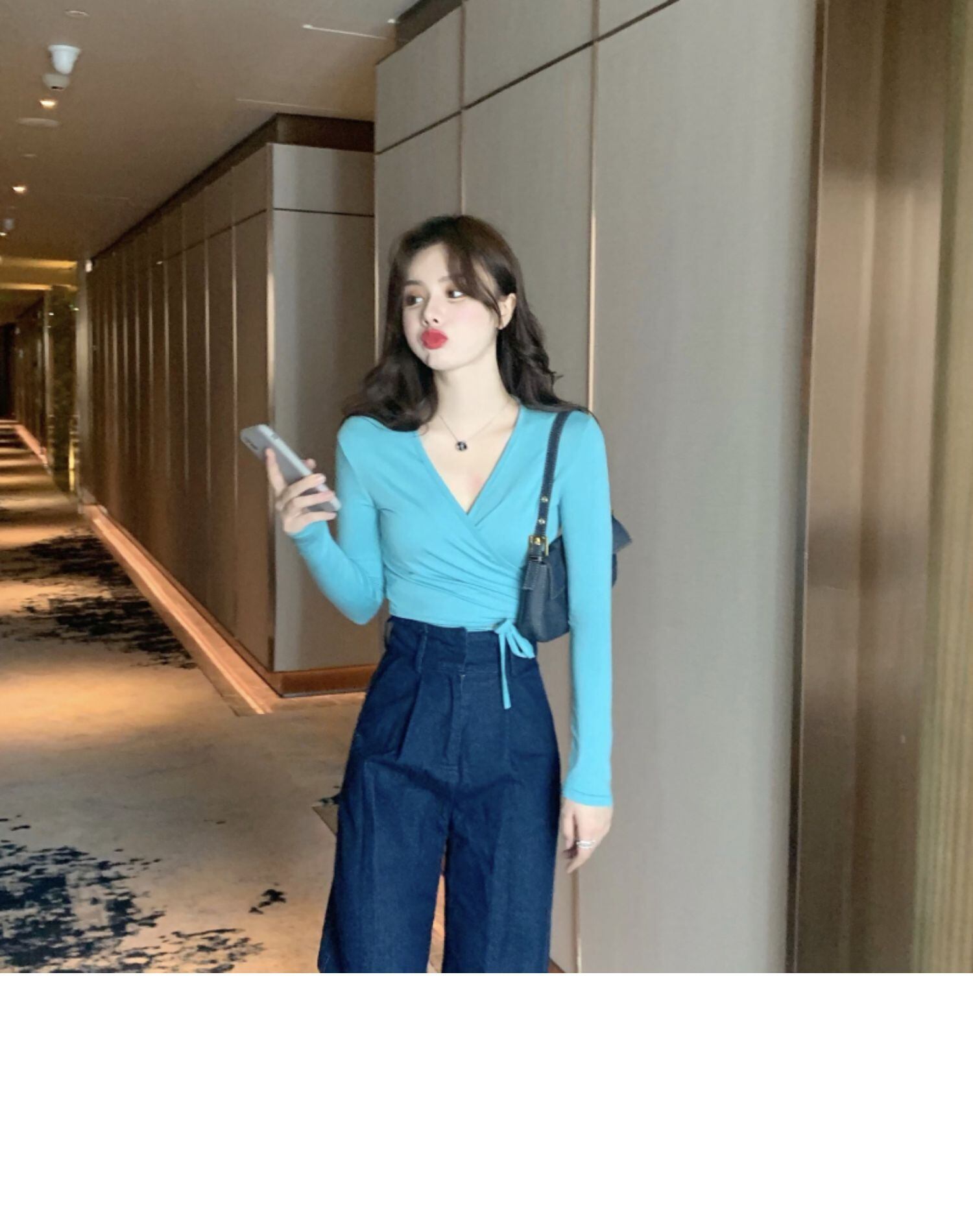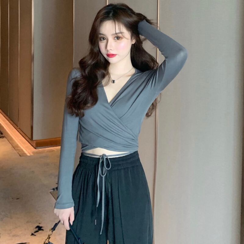 オータムクロスTシャツ レディーススタンダードVネックカーディガントップス レトロ 秋物 ドラファッションホール99512338747