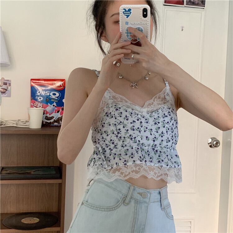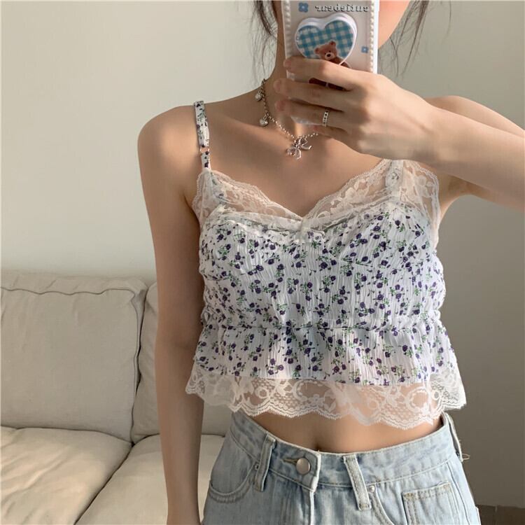 スタンダードハイウェストサマーフローラルギャザートップス レトロ 夏物 花柄 ドラファッションホール77473341250
