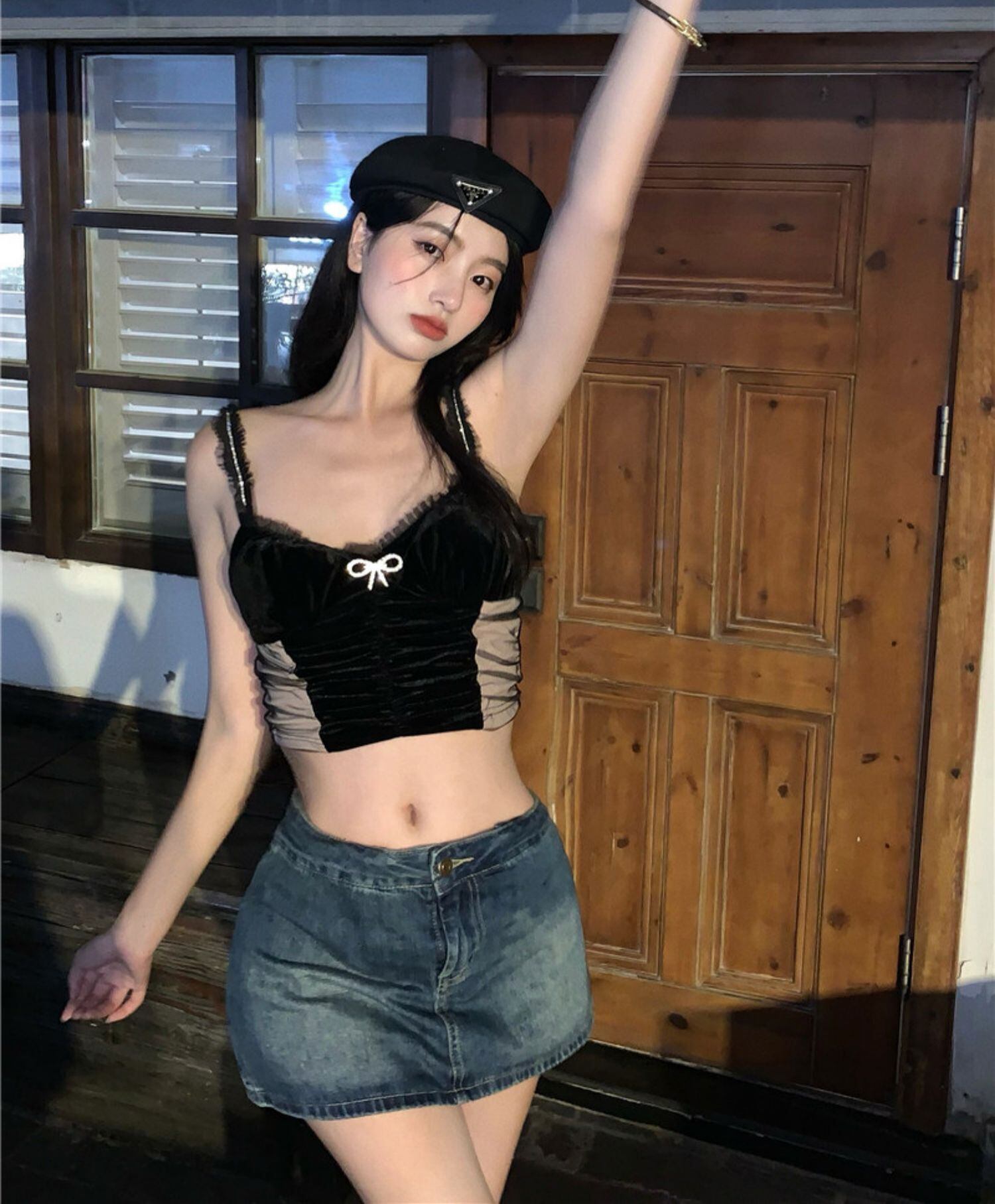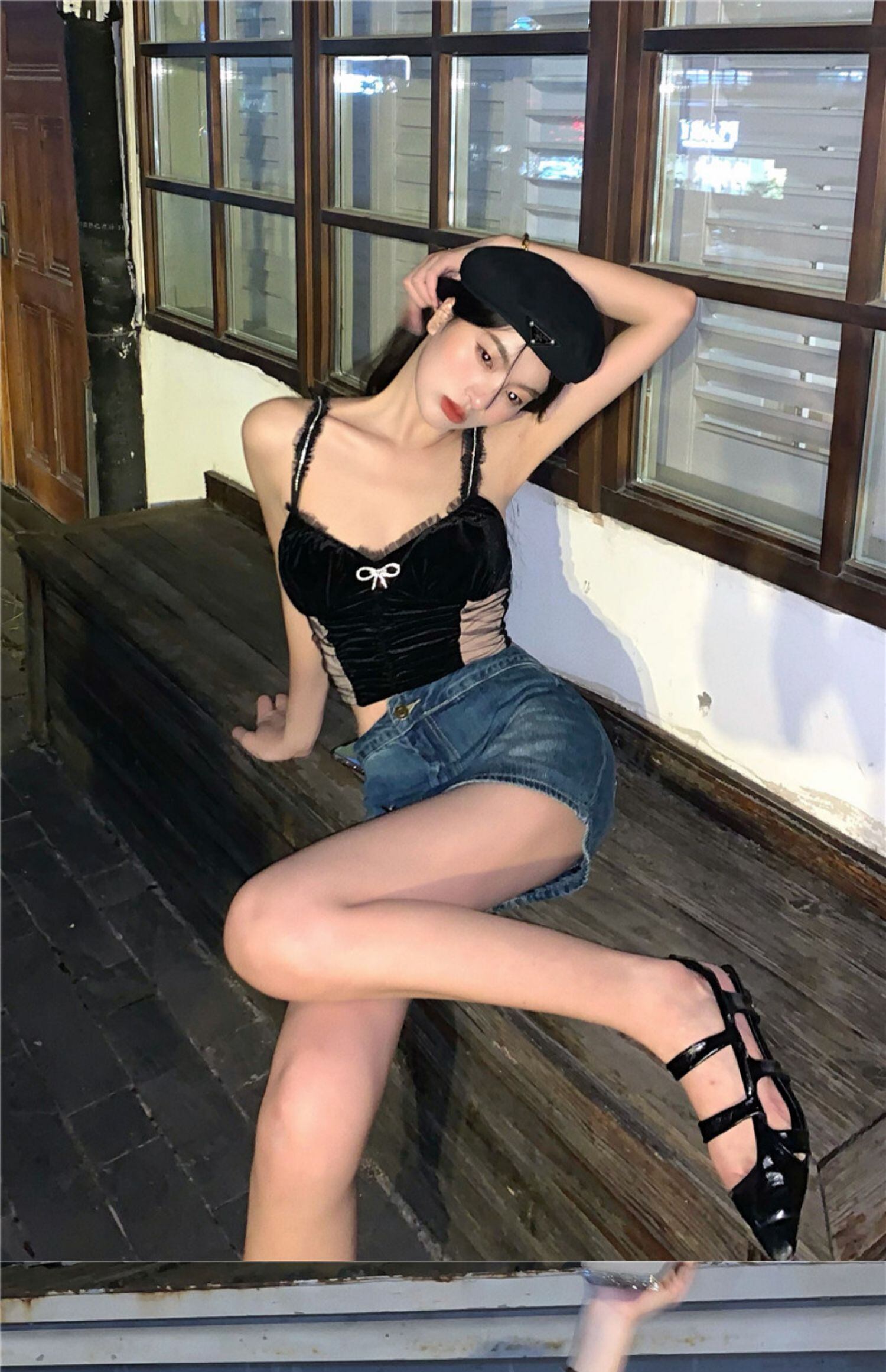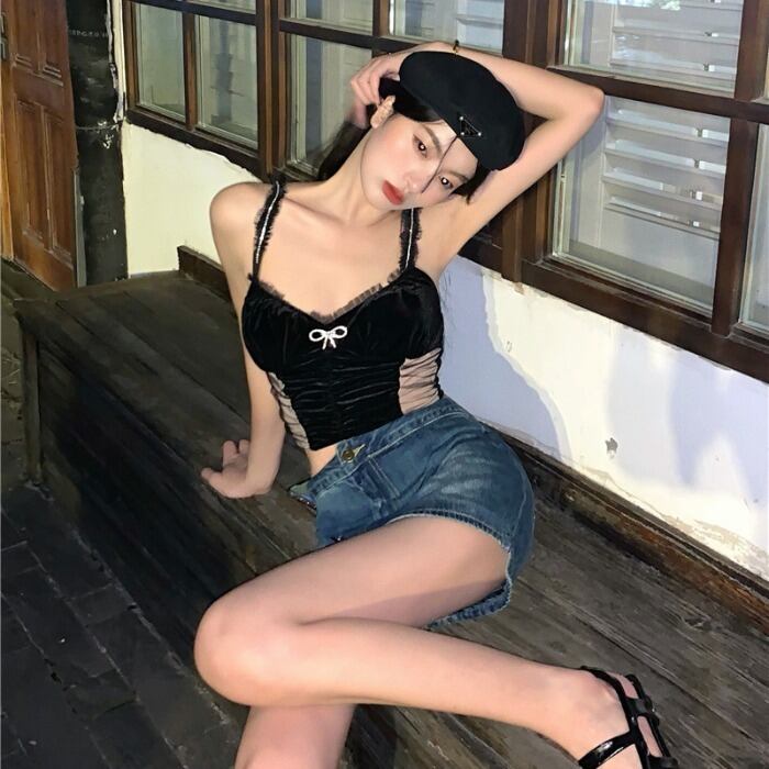 レースチェーン リボンスタンダードベルベットブラックサマー レトロ 夏物 ドラファッションホール45880496082