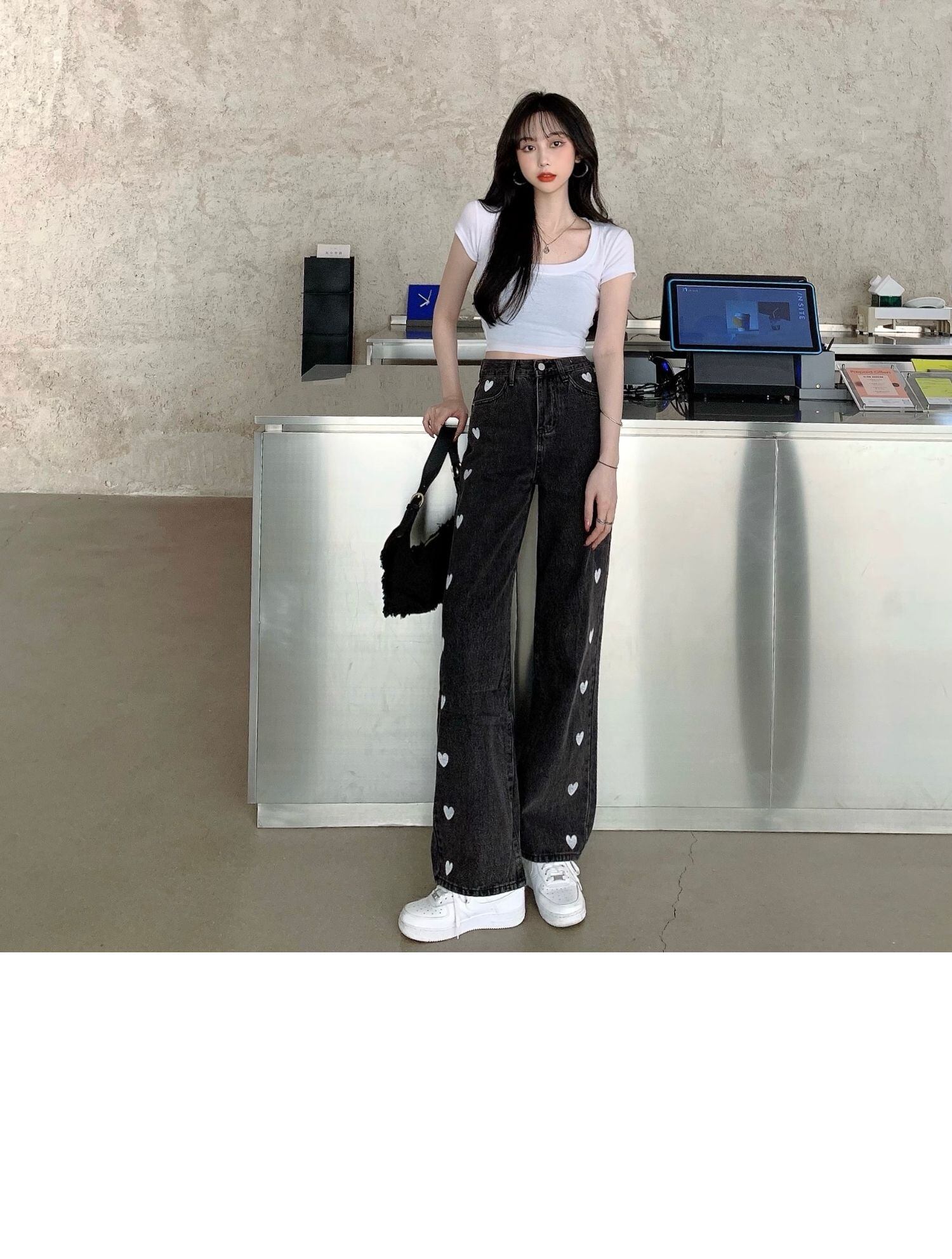 パンツ サマースタンダードハイウェストウェストプリントルーズジーンズ レトロ 夏物 ドラファッションホール70396189528