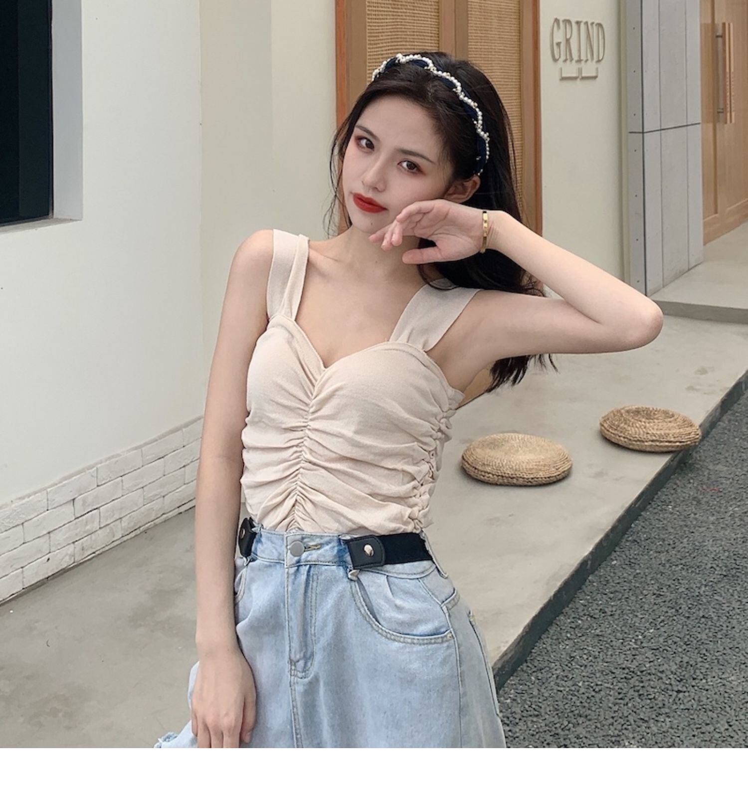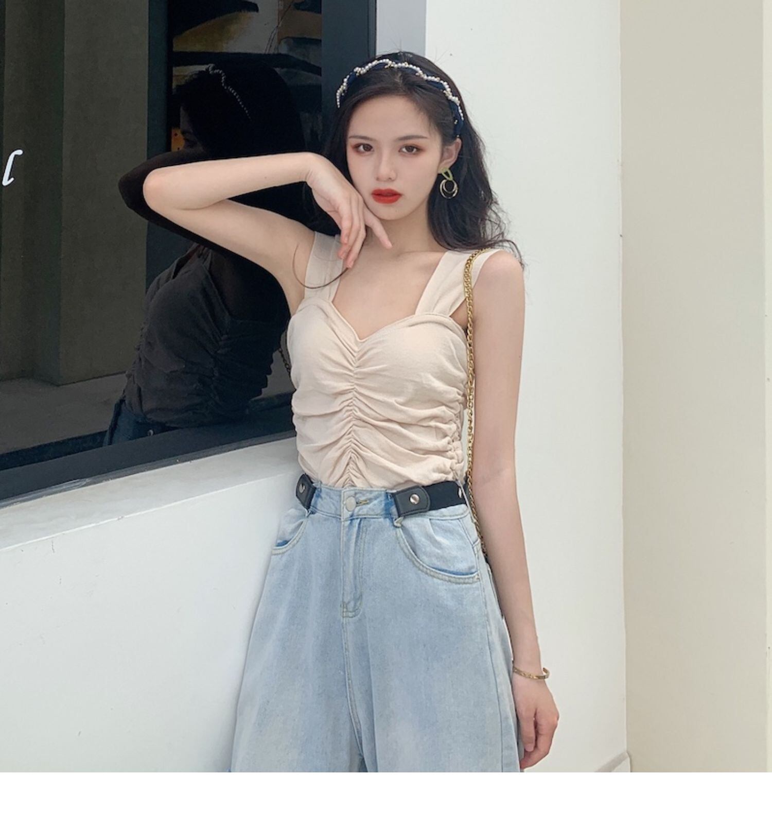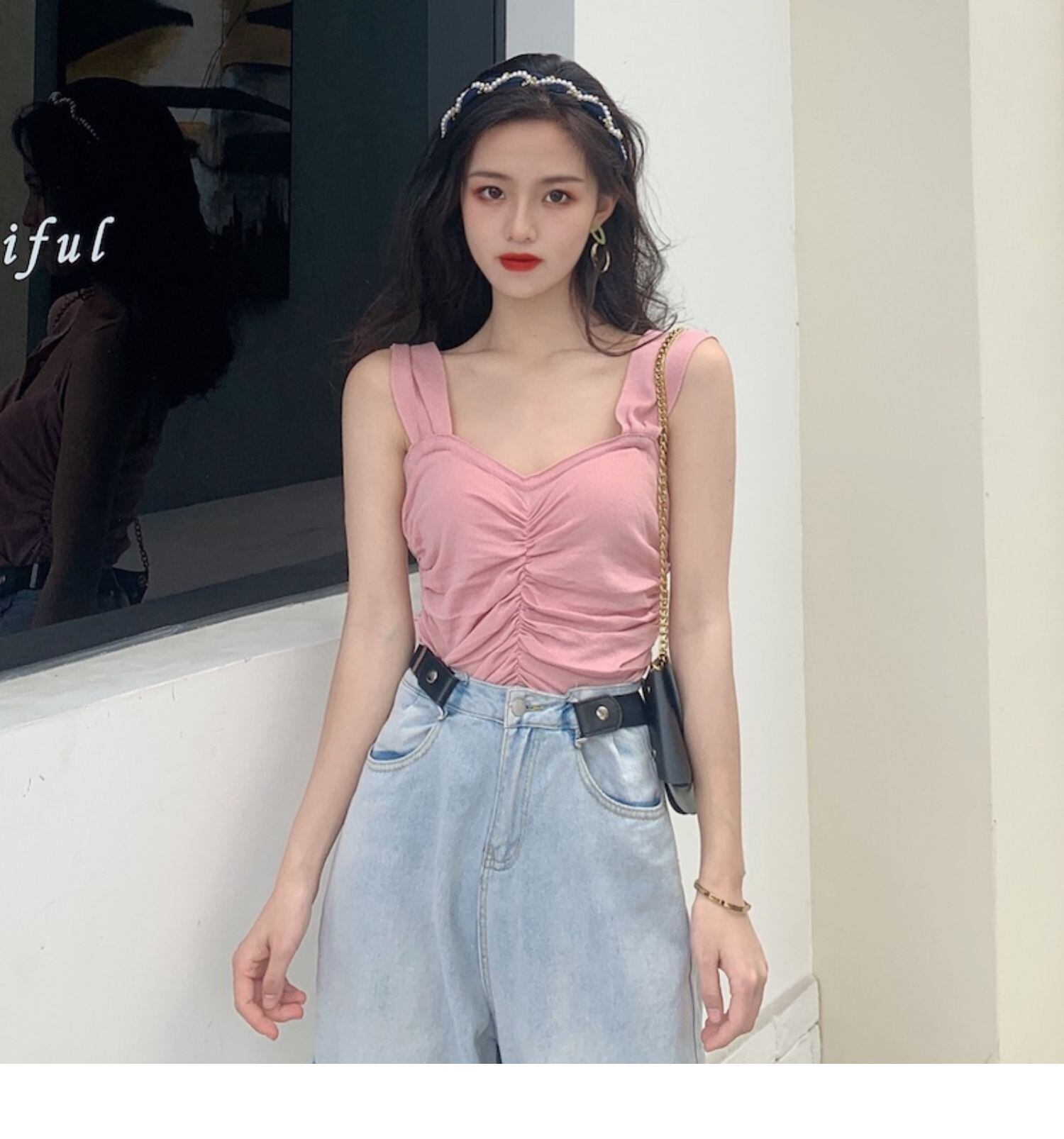 サマースタイルスタンダードソリッド カラートップス ショートレディース レトロ 夏物 ソリッドカラー ドラファッションホール69589916321