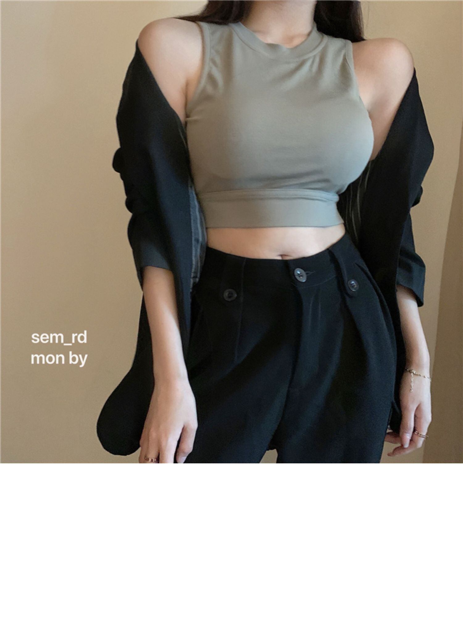 サマースタイルスタンダードソリッド カラーショートトップス レディース レトロ 夏物 ソリッドカラー ドラファッションホール43129258633