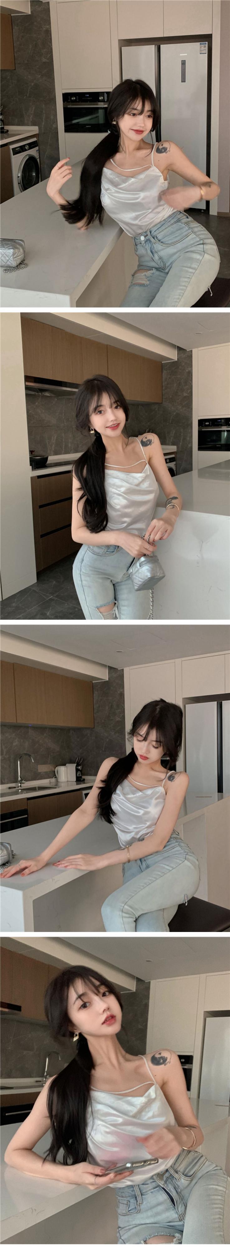 サテンノースリーブサマートップス 夏物 ドラファッションホール4101812293