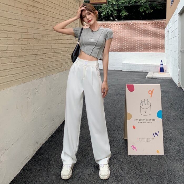 パンツ サマーハイウェストルーズ薄手カジュアル 夏物 ドラファッションホール7460050038