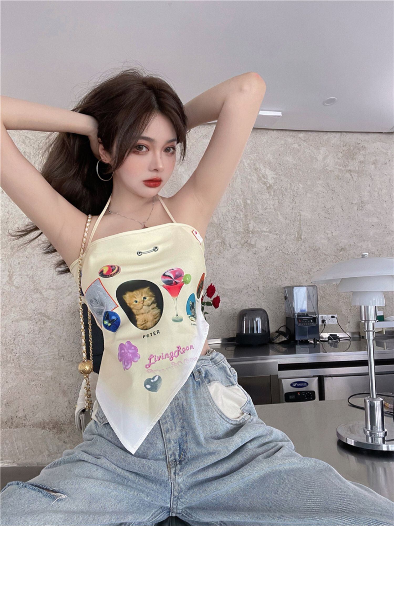 サマースタイルホルタープリントトップス ショートレディース 夏物 ドラファッションホール51296233922