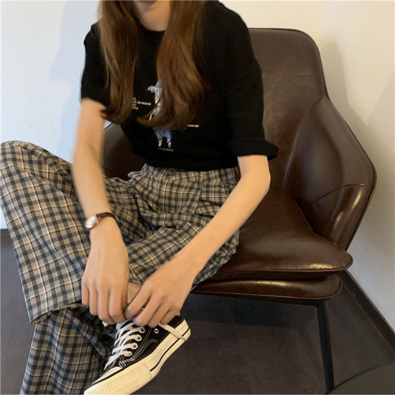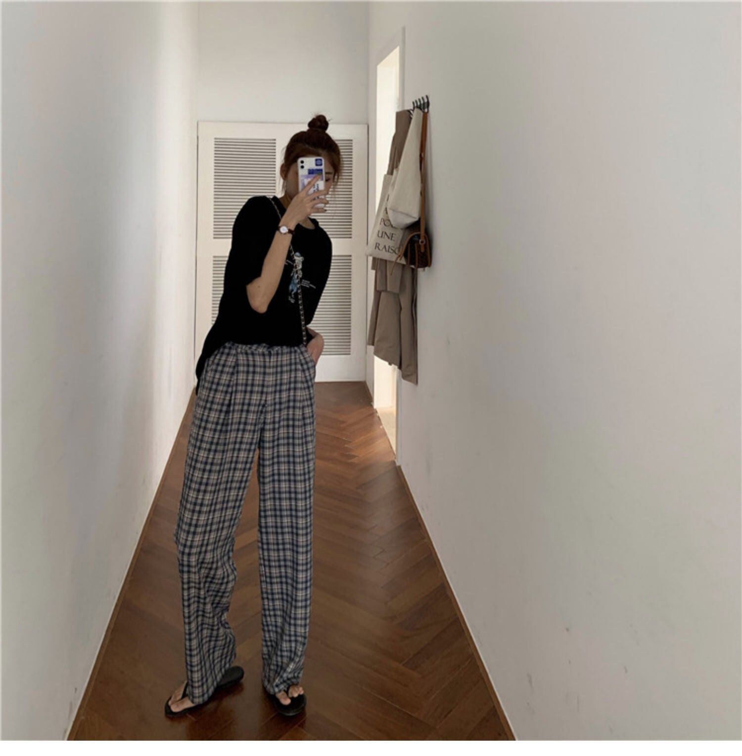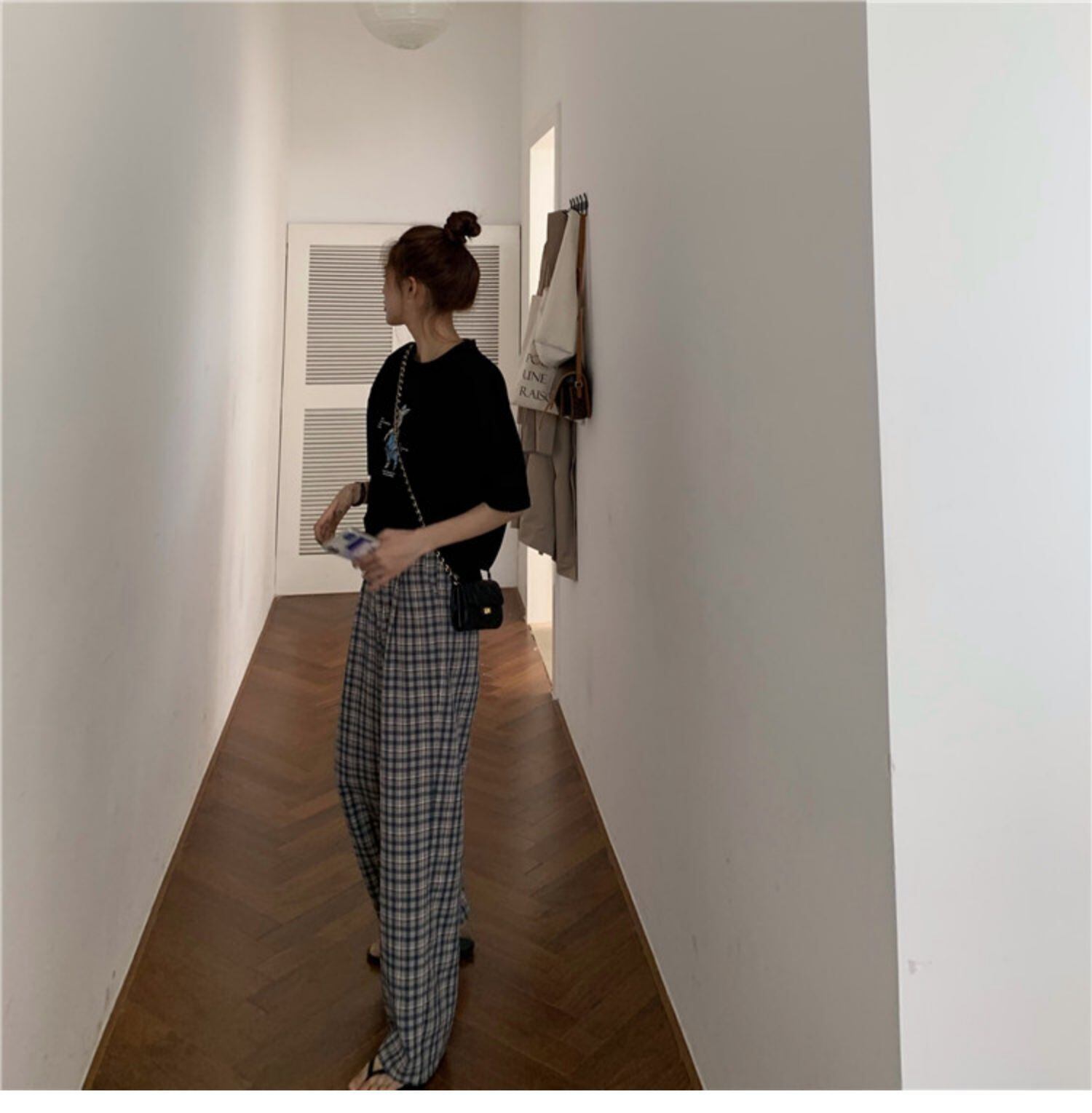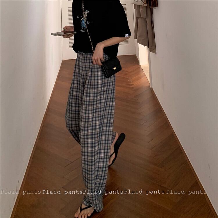 格子柄カジュアルパンツ ルーズレディースサマー薄手 夏物 ドラファッションホール10137633872