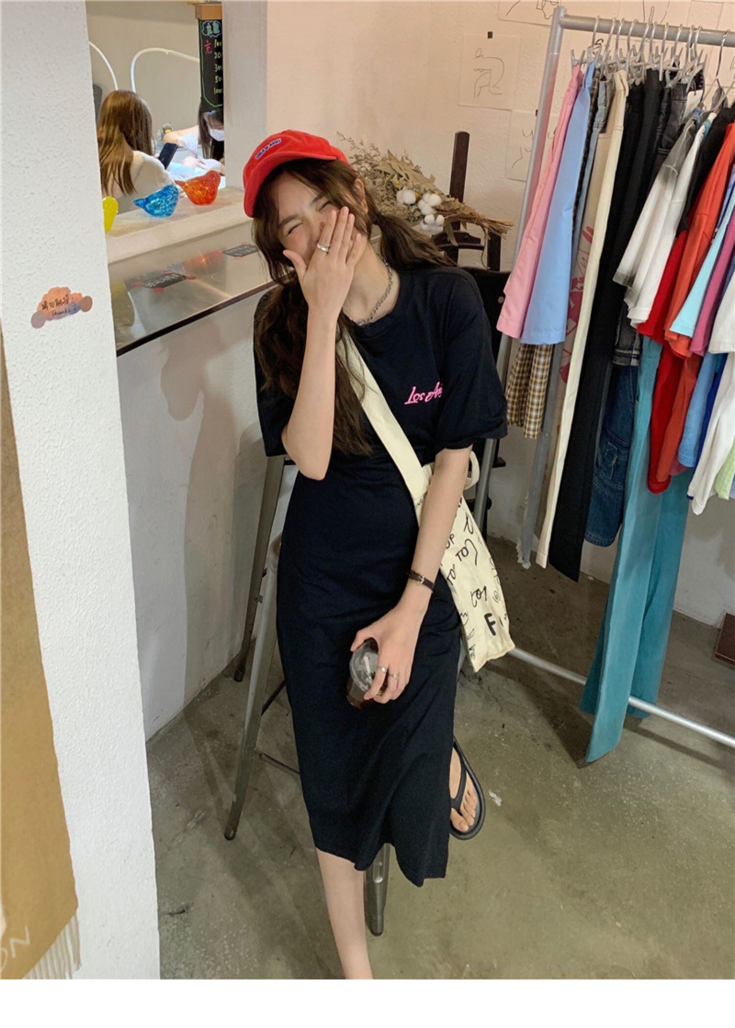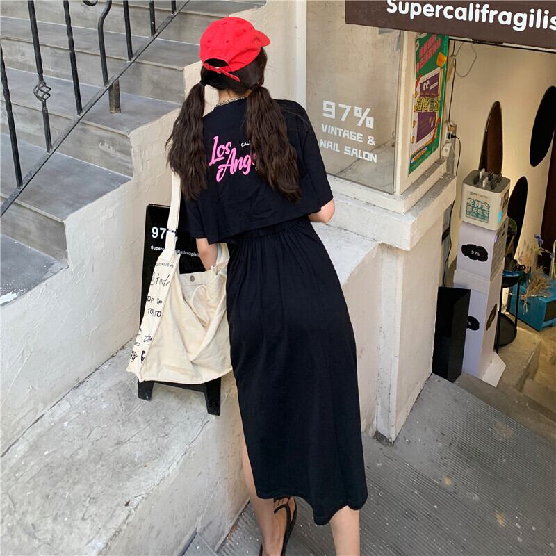 ウェストTシャツ スカート ラウンドネックプルオーバー ルーズスリムサマードレス 夏物 Oネック ドラファッションホール13866105923