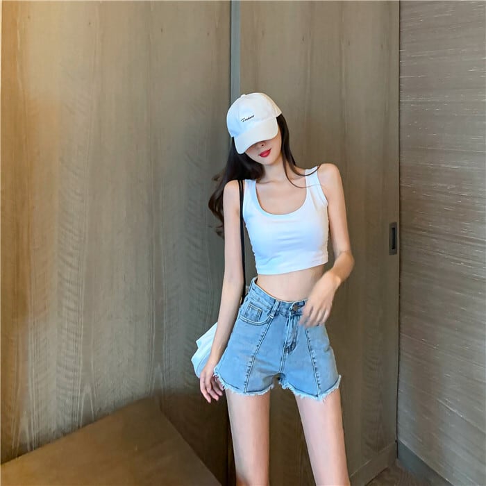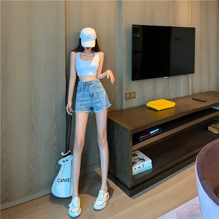 ハイウェストスリムジーンズ サマーショーツ パンツ 夏物 ブルマー ドラファッションホール4142281407