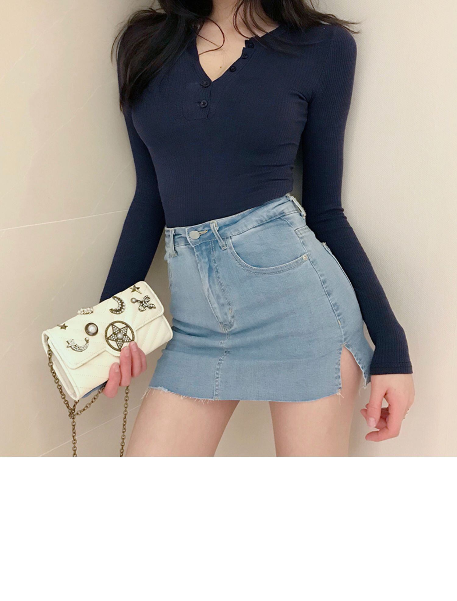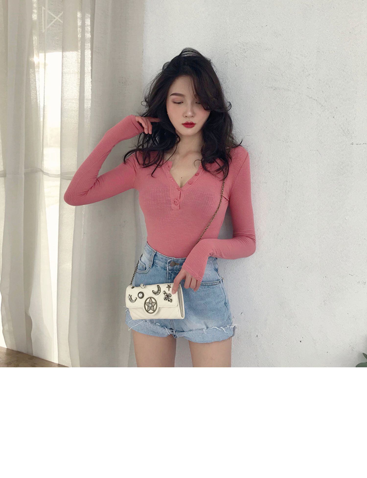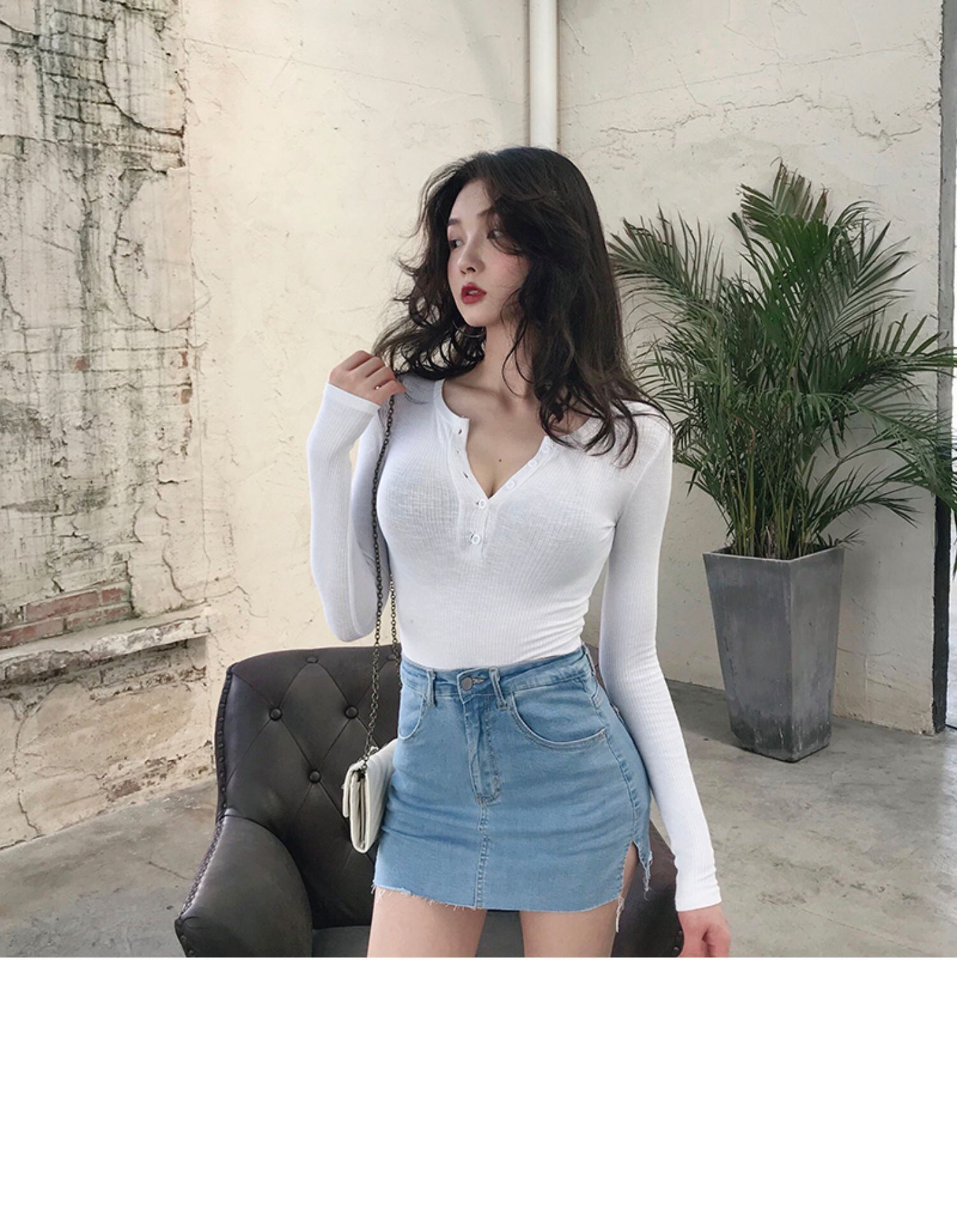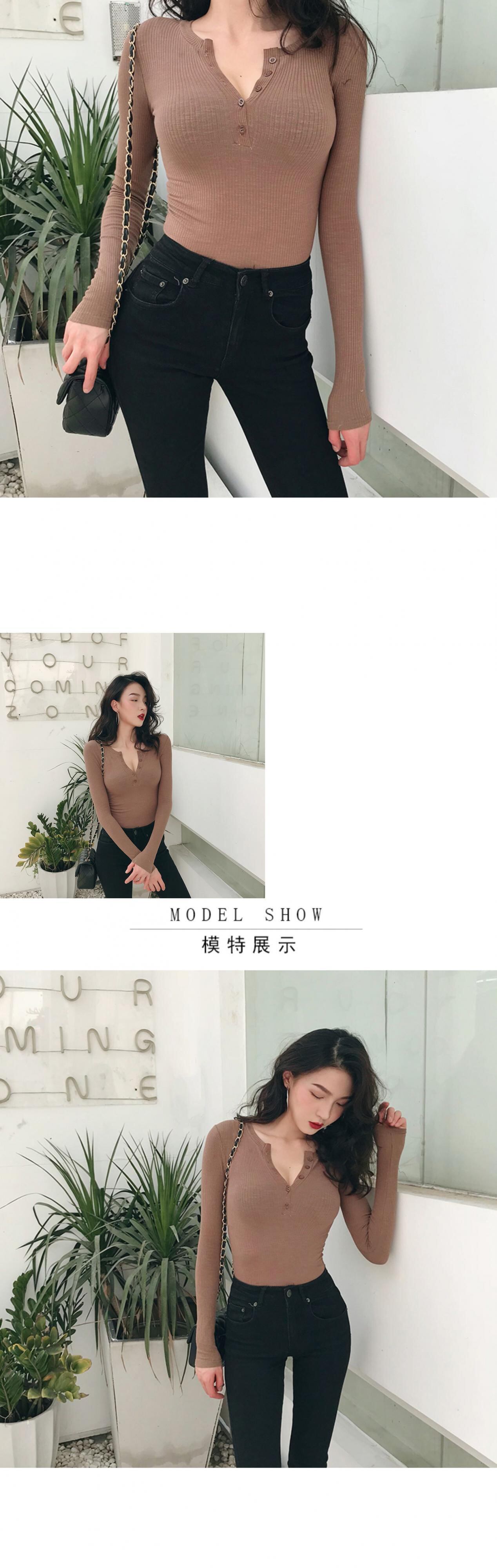 スタンダードトップス サマーVネックスリムTシャツ ロング レトロ 夏物 ドラファッションホール11734564559