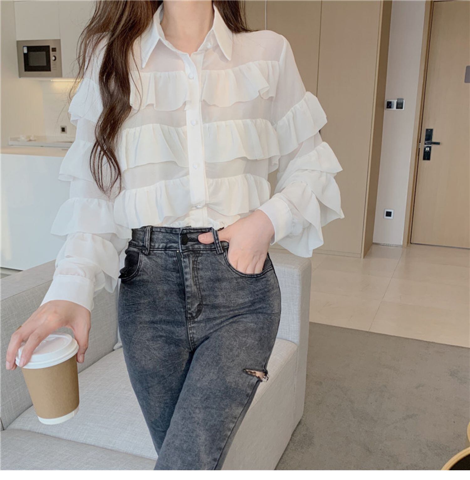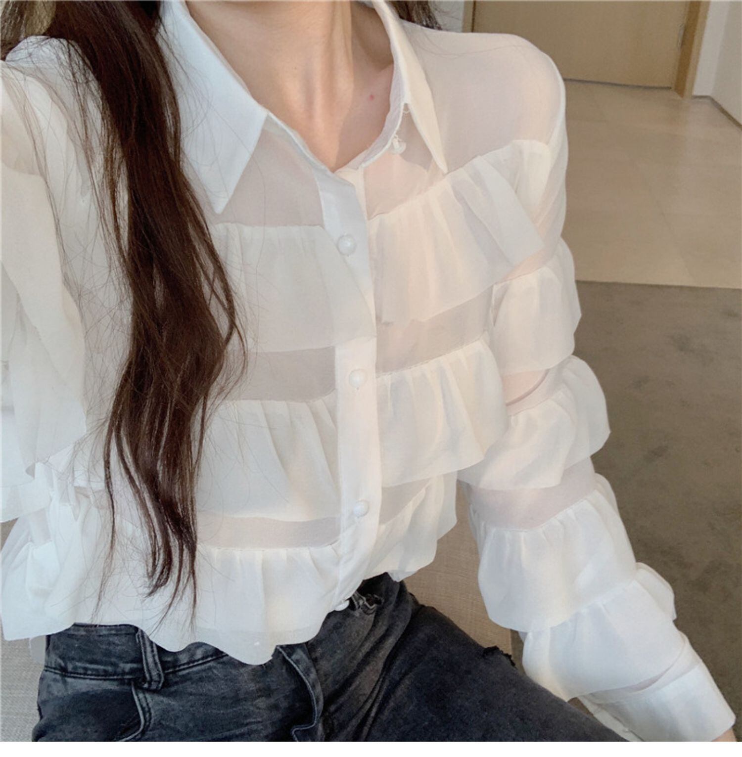 スタイルオータムブラウス 薄手カラールーズホワイトシャツ レディース ロング 秋物 ドラファッションホール37499498707