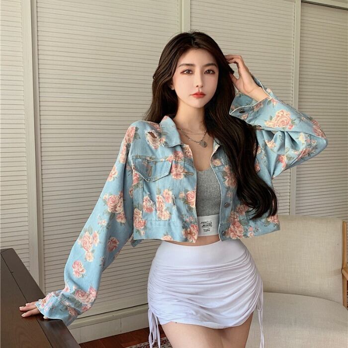 シングルプリント柄オータムジャケット ショート 秋物 ドラファッションホール56104944544