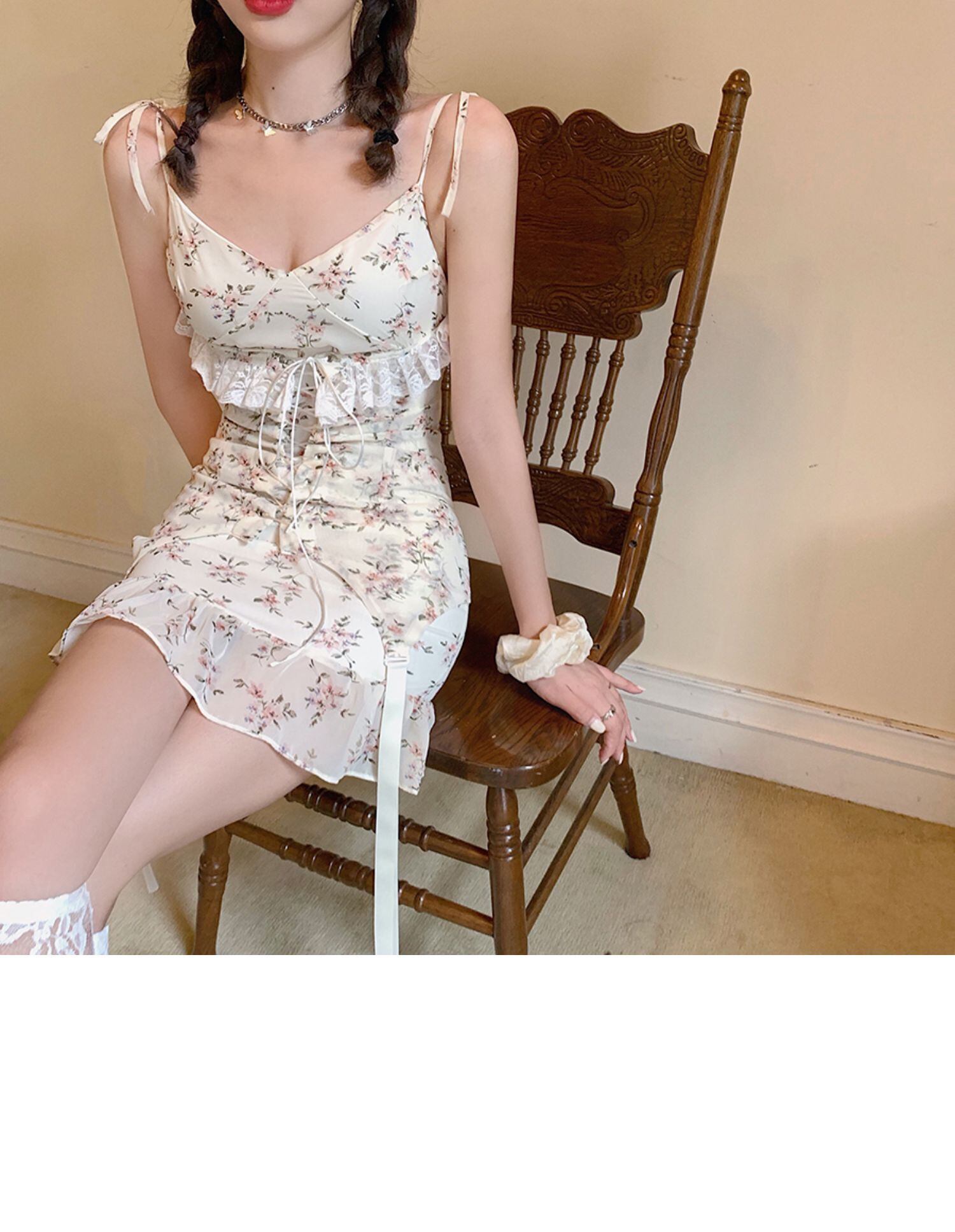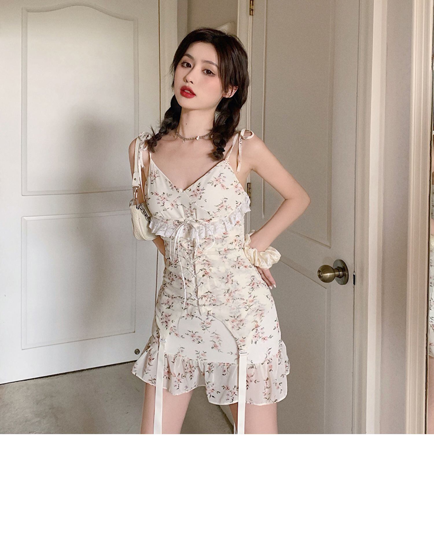 スカート スプリングサマースタイルVネックスリムフローラルドレス 大人ガーリー スウィート キュート カジュアル 春物 夏物 花柄 ドラファッションホール21851165400