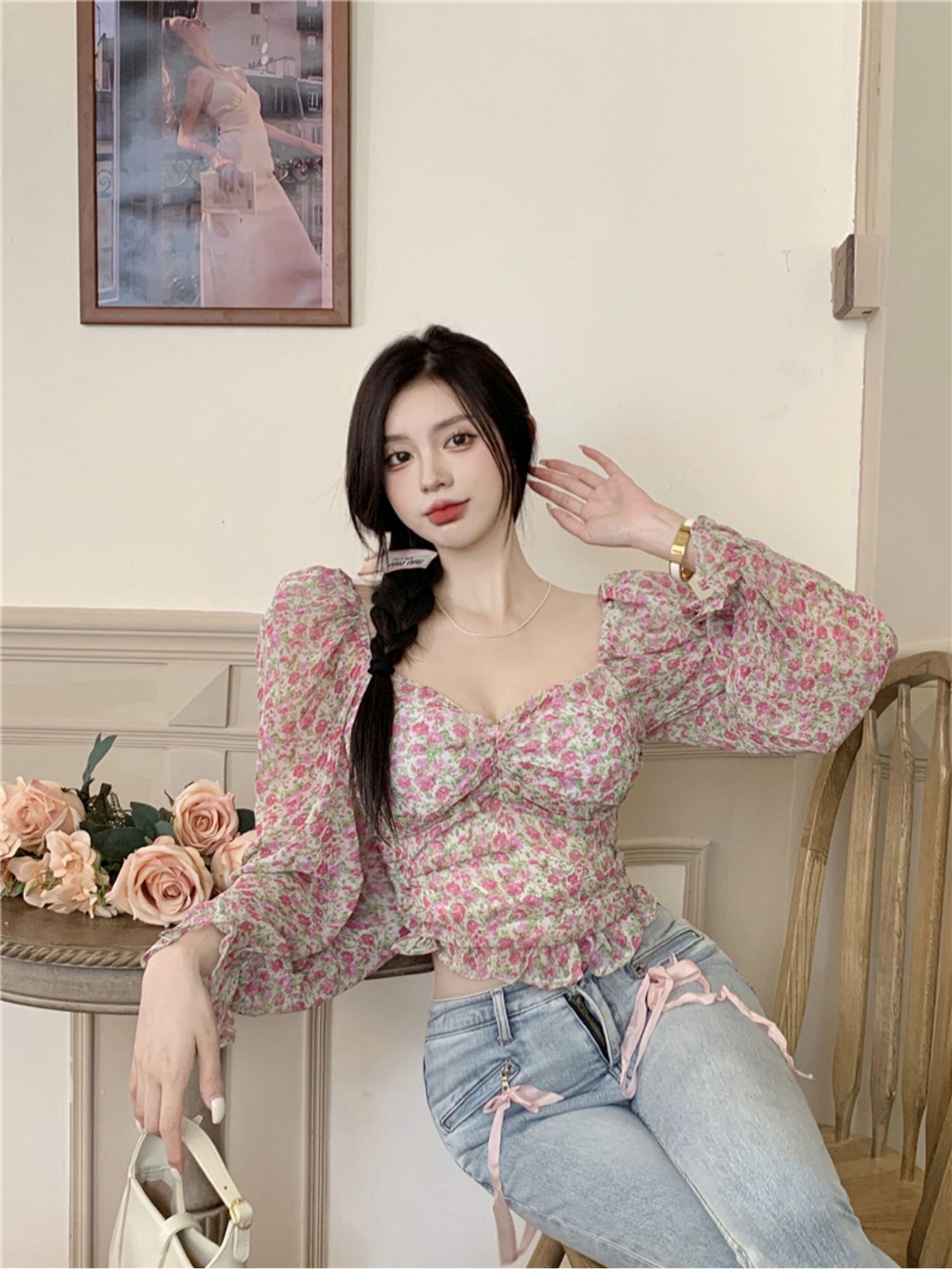 スタイルスタンダードフローラルブラウス カジュアルショートシャツ レディース ロング レトロ 花柄 ドラファッションホール98280455883