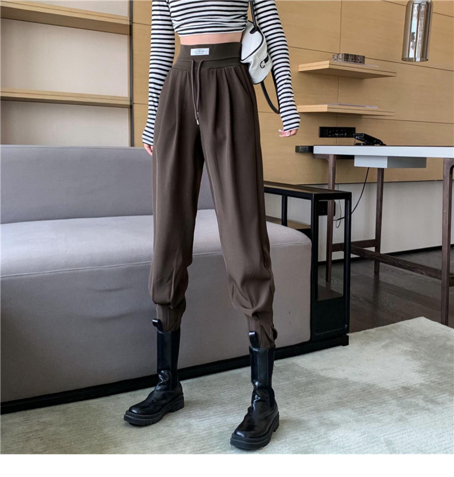 スリムギャザーオータムカジュアルパンツ ルーズ 秋物 ドラファッションホール48352626210
