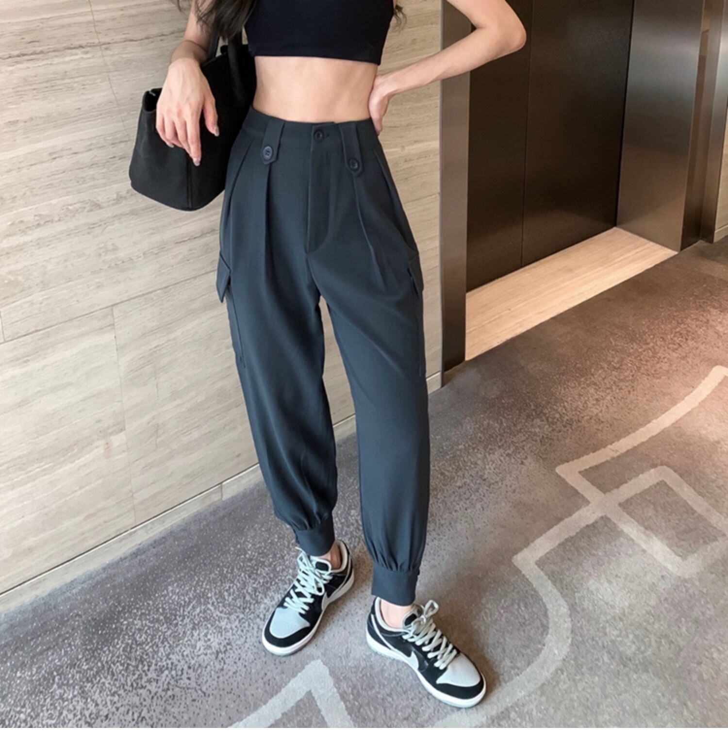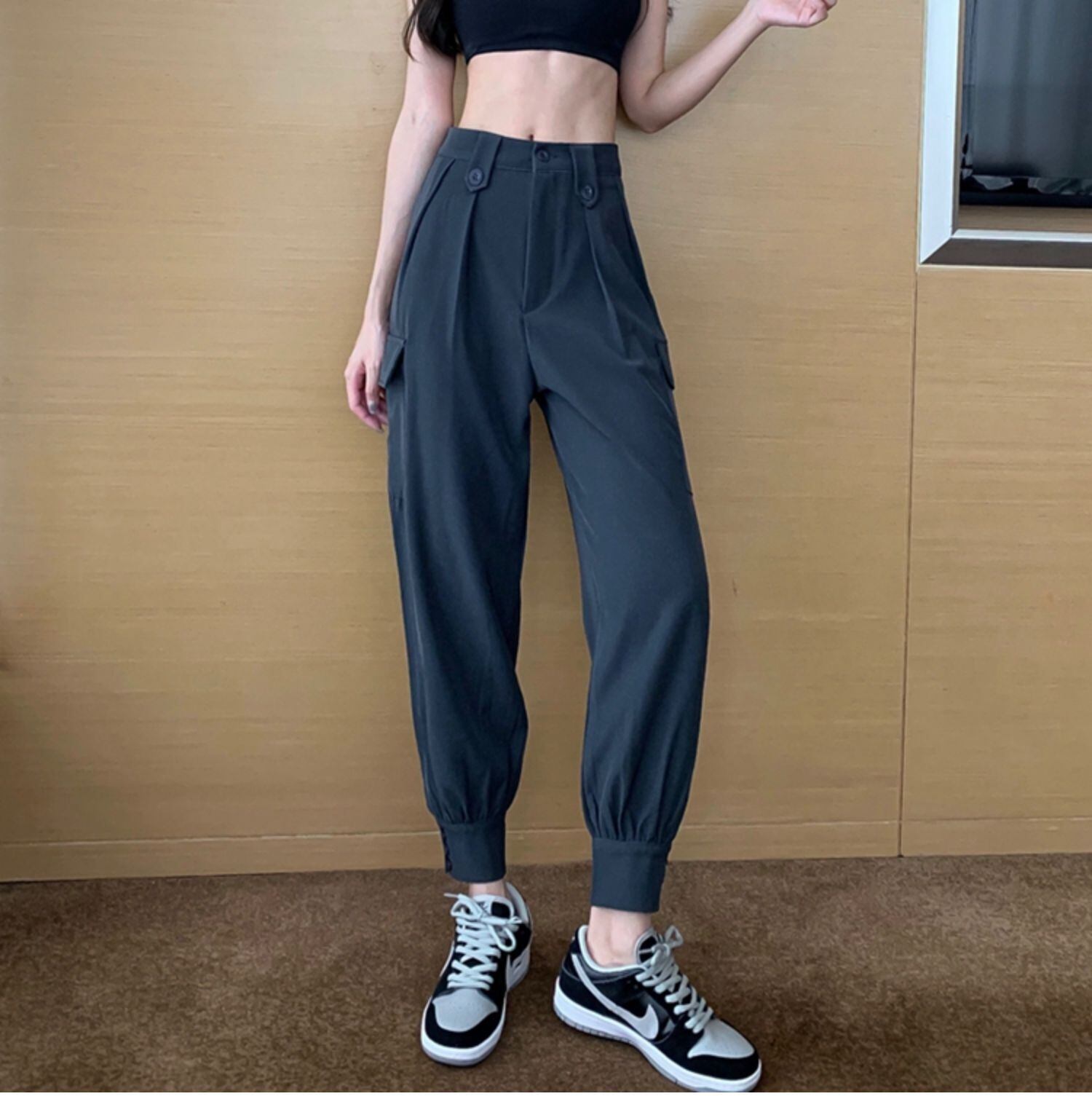 オータムスタイルスタンダード薄手ハイウェストウェストカジュアルオーバーオール パンツ ブーツ レトロ 靴 シューズ 秋物 ドラファッションホール55817913900