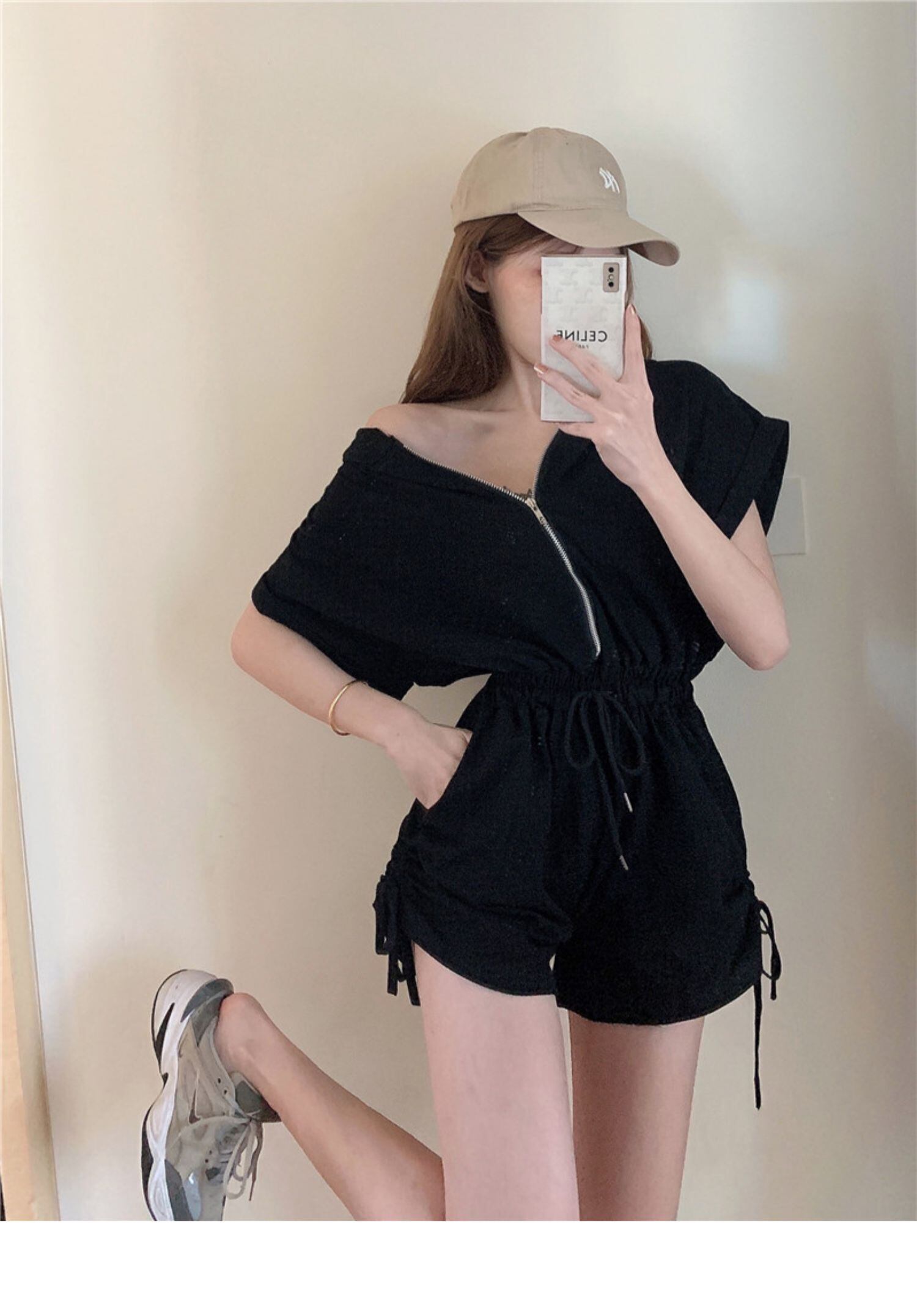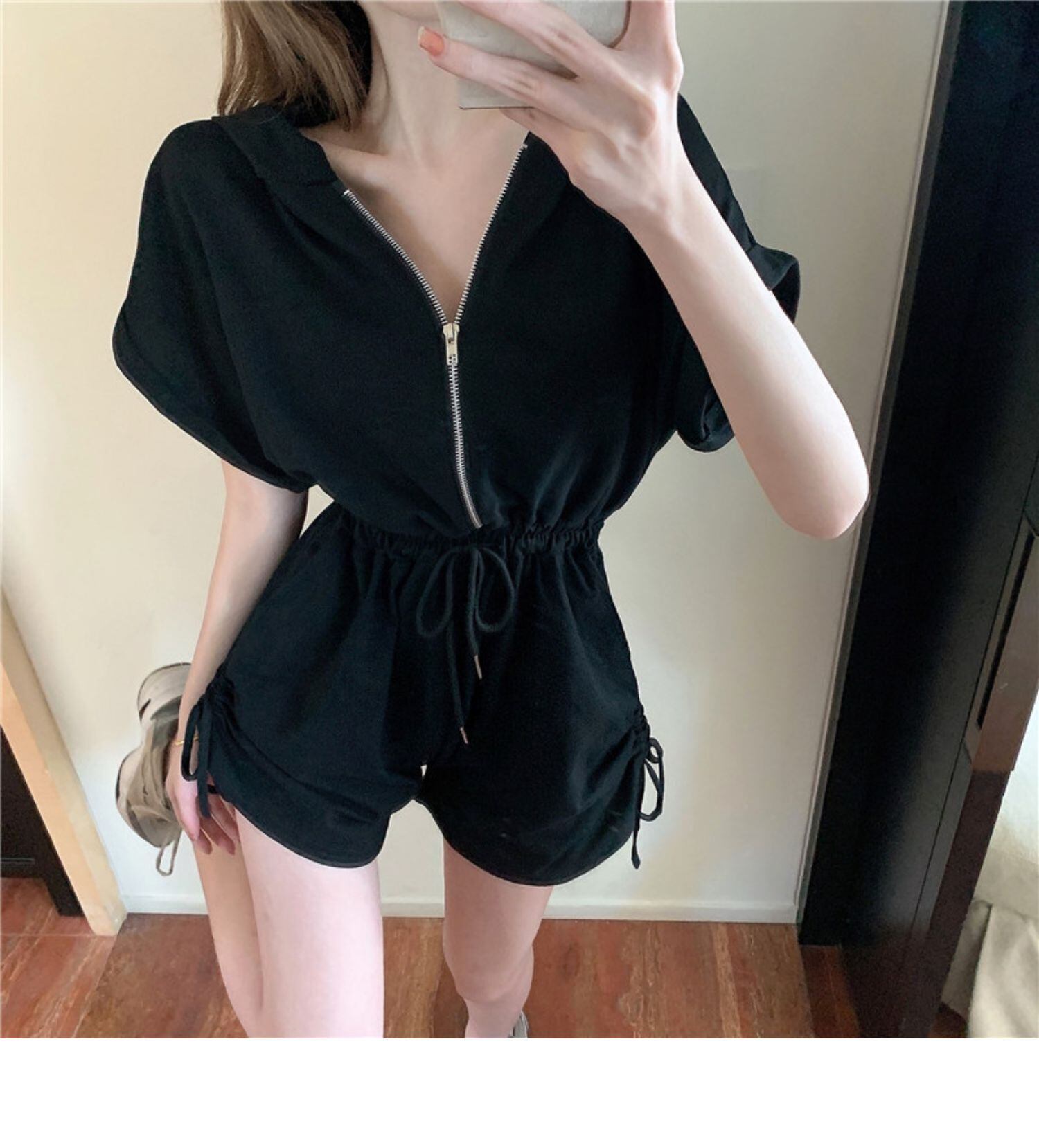 パンツ サマーフードギャザージャンプスーツ オールインワン ショーツ ウェスト 夏物 ブルマー ドラファッションホール17599114959