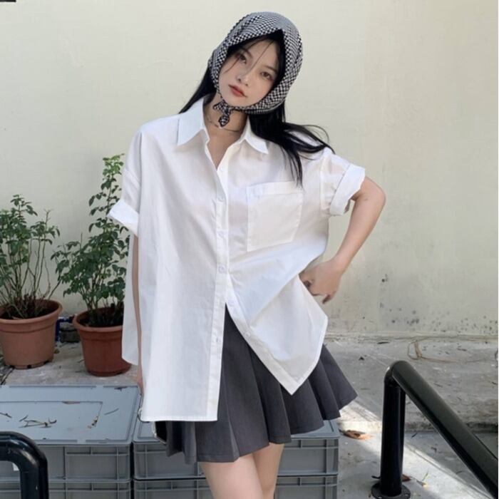 ルーズカジュアルスタイルバックシャツ サマー薄手 夏物 ステッチ ドラファッションホール6844644987