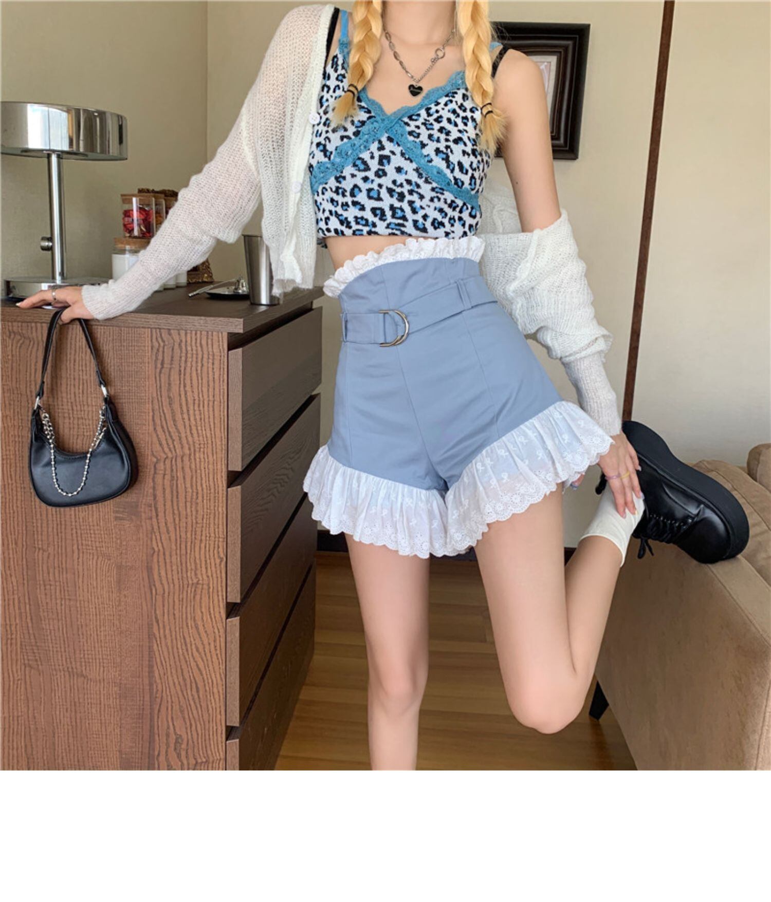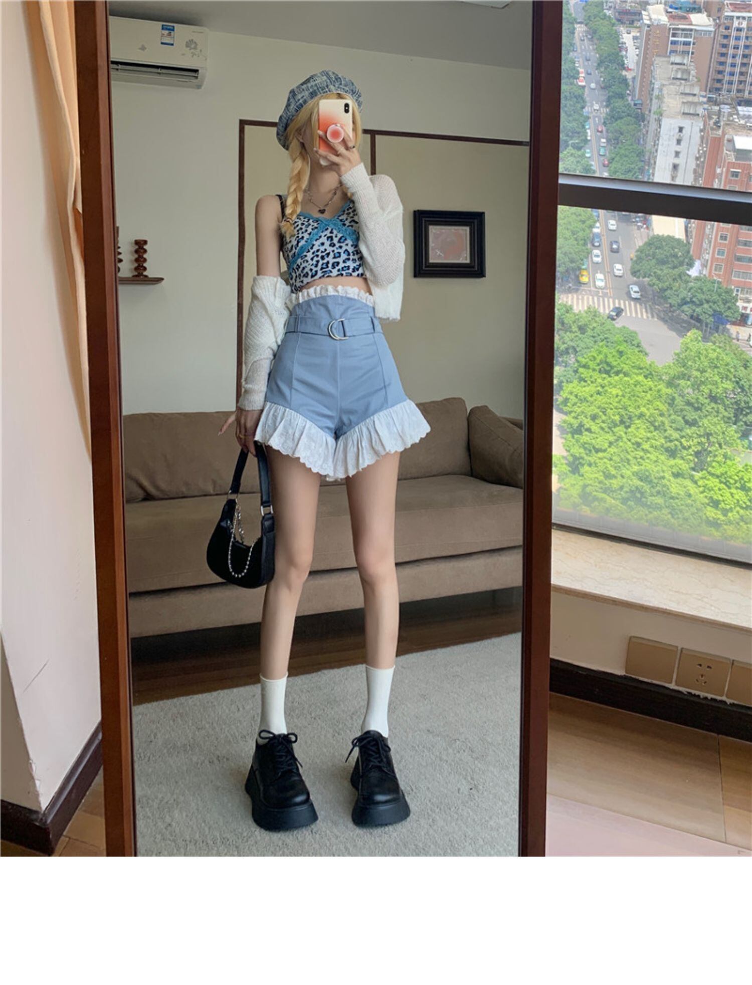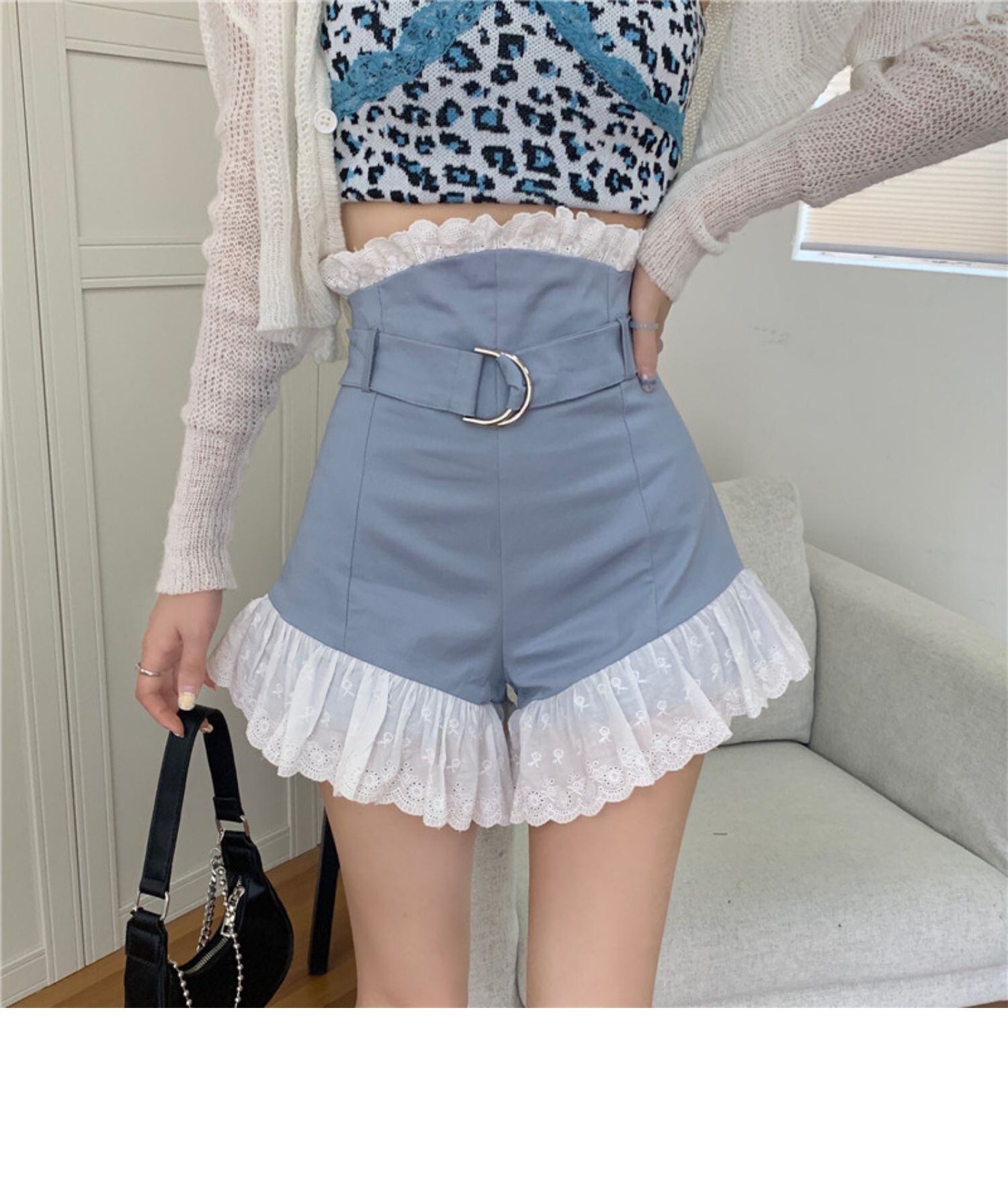 パンツ サマースタイルスタンダードウェストワイドレッグショーツ 薄手レース レトロ 大人ガーリー スウィート キュート カジュアル 夏物 ブルマー ワイドパンツ ドラファッションホール38235759475
