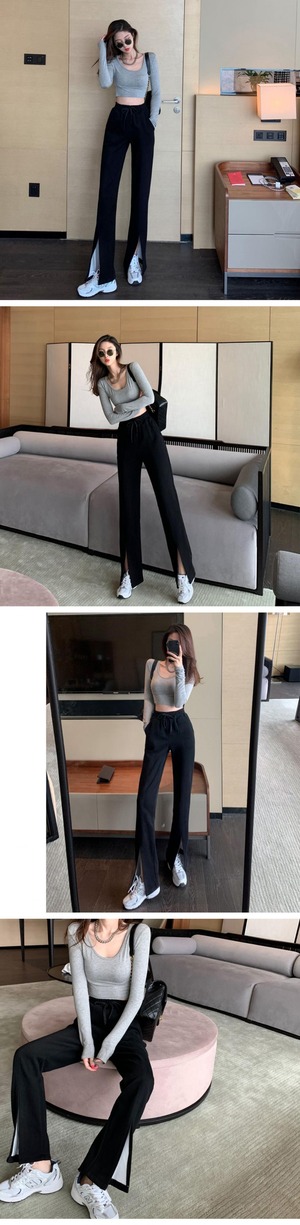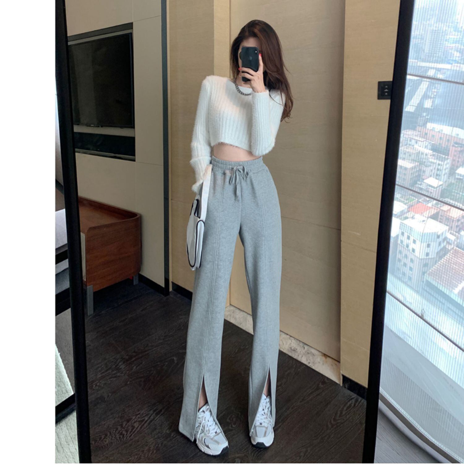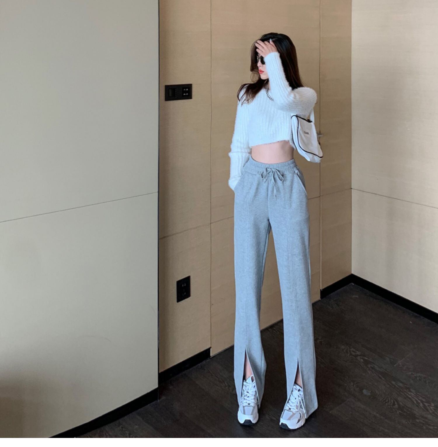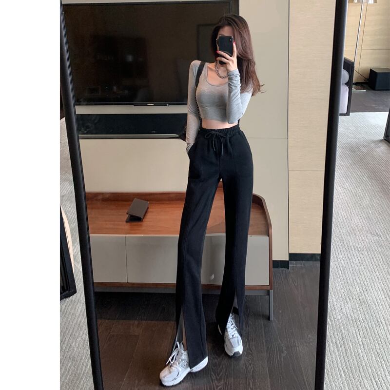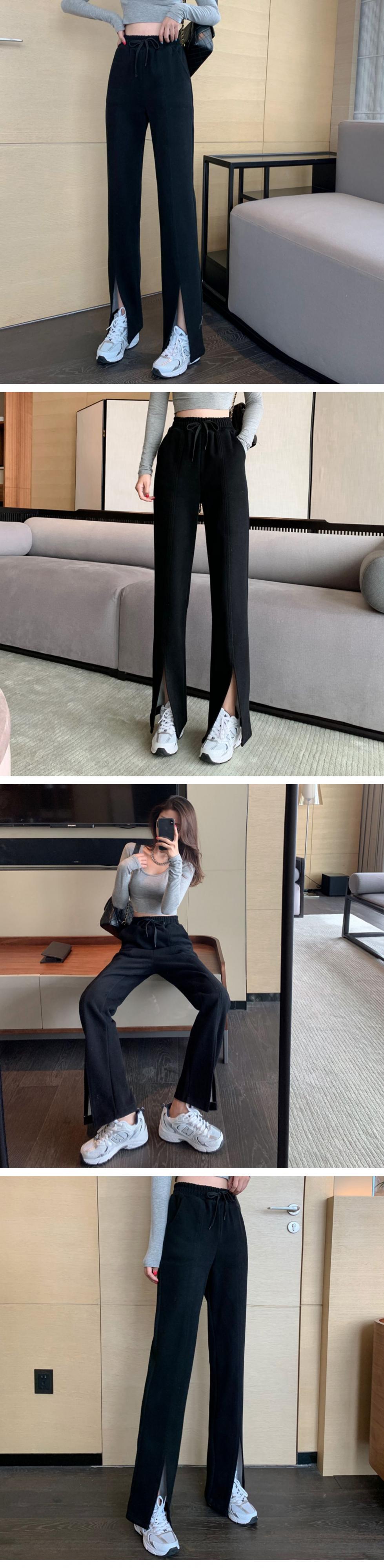 カジュアルパンツ ハイウェストウェスト薄手ルーズワイドレッグレディース レッド ワイドパンツ ドラファッションホール83022647198
