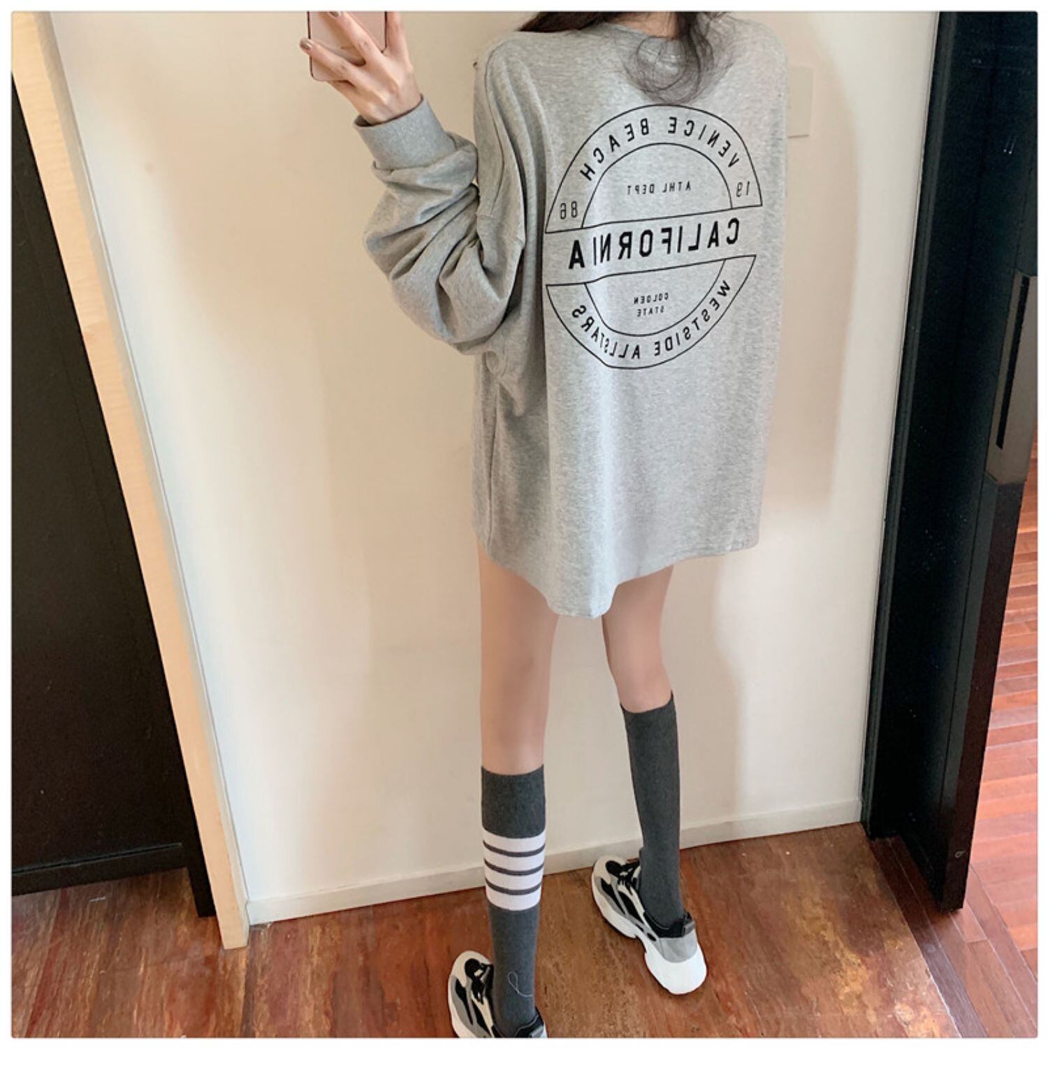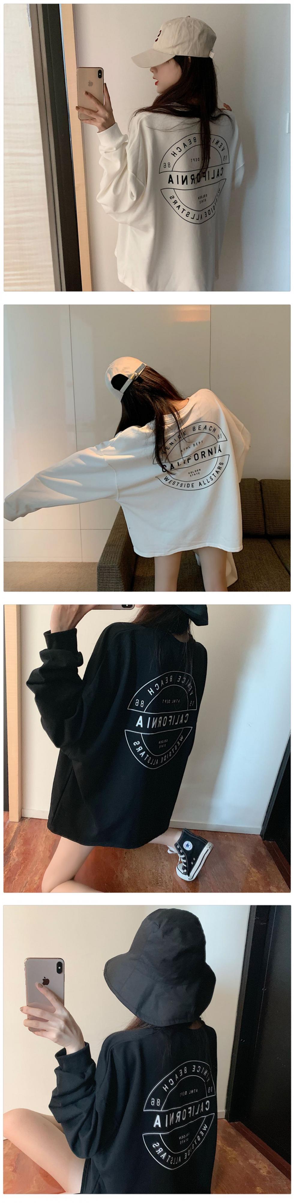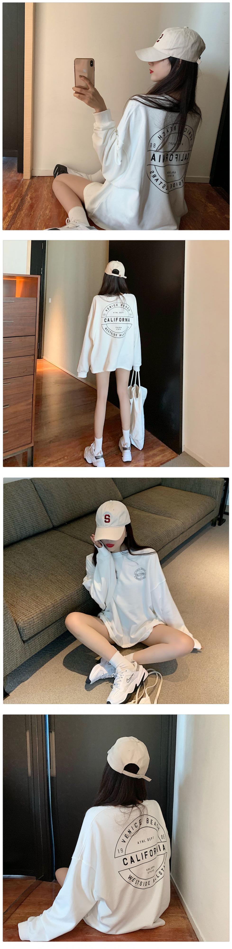ルーズカジュアルプリントラウンドネックプルオーバー セーター トップス レディースサマー ロング 夏物 Oネック ドラファッションホール11390123037