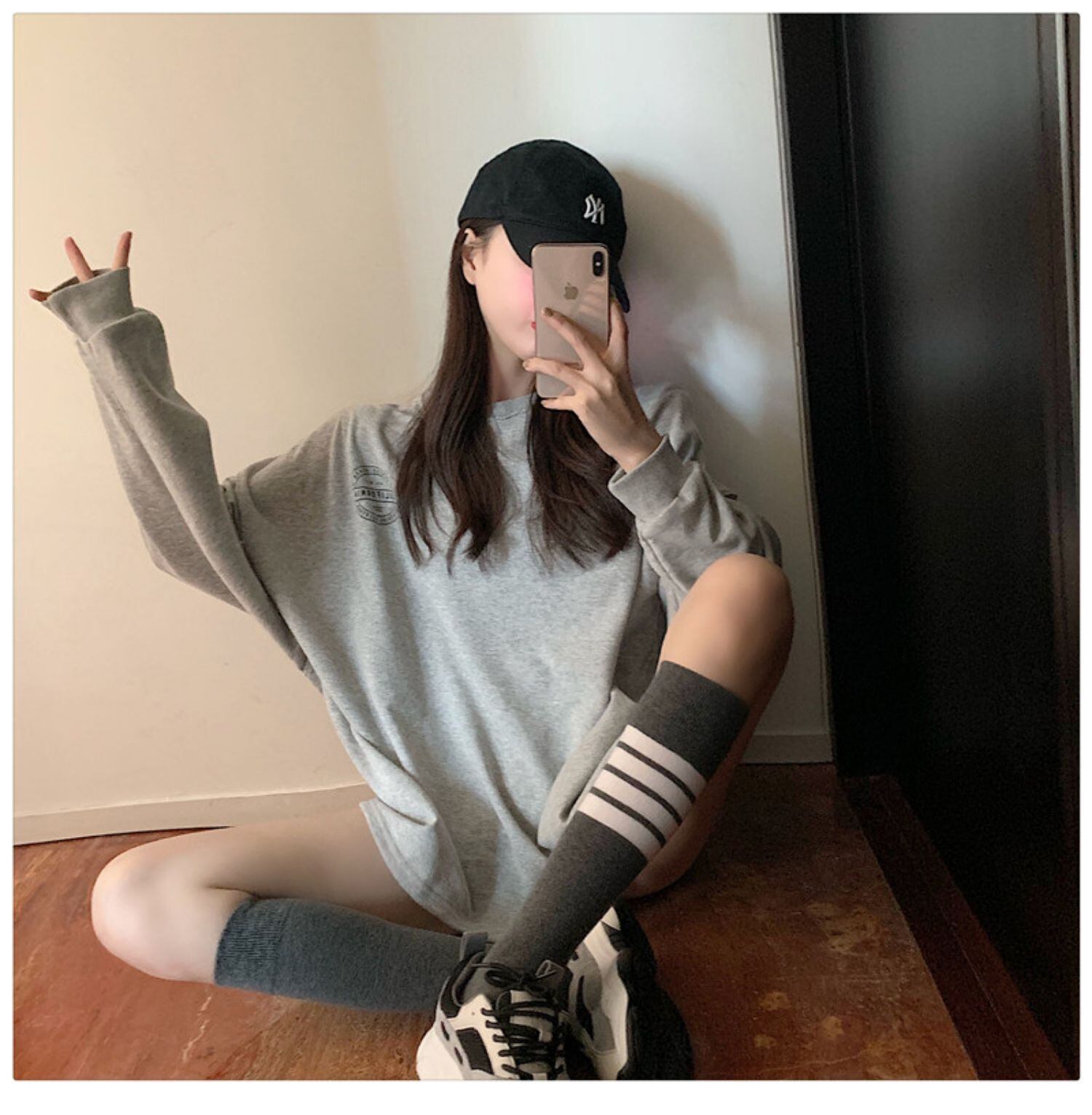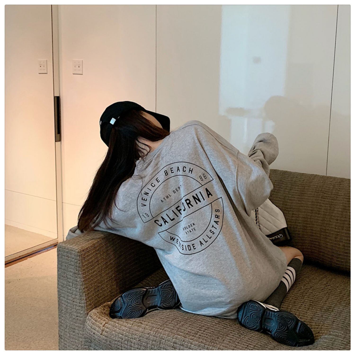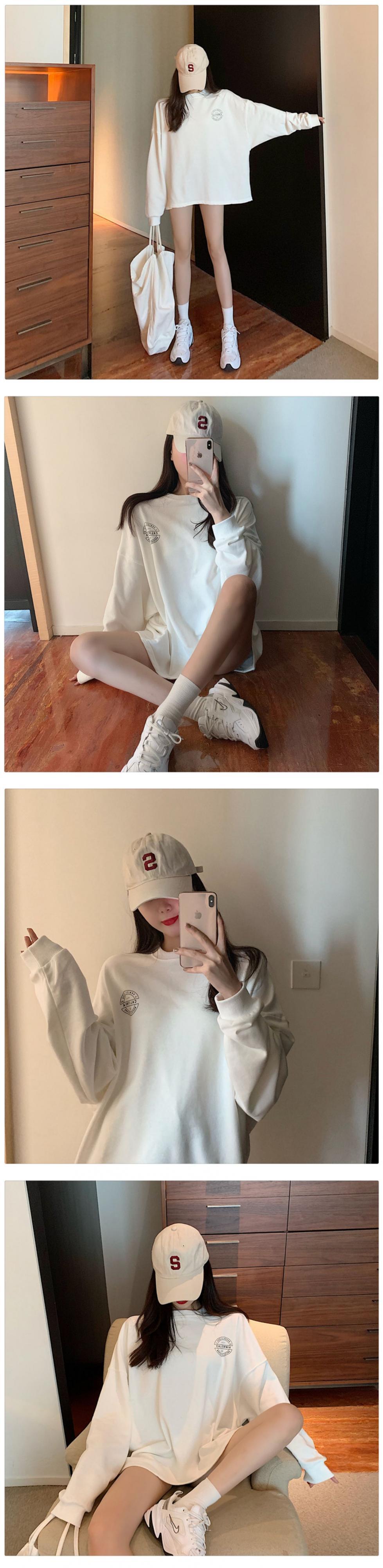ルーズカジュアルプリントラウンドネックプルオーバー セーター トップス レディースサマー ロング 夏物 Oネック ドラファッションホール11390123037