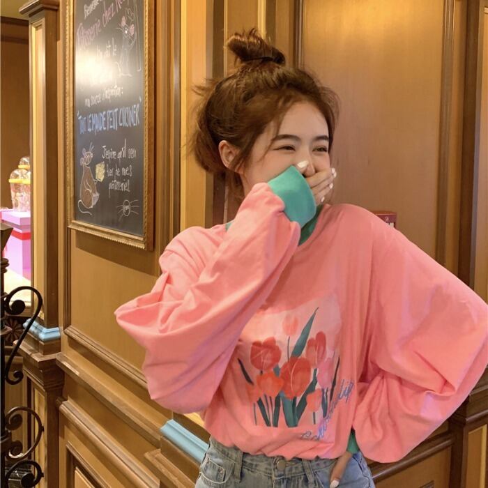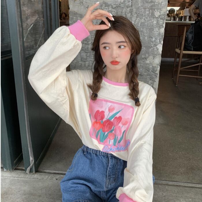 オータムプリントルーズTシャツ トップス レディース ロング 大人ガーリー スウィート キュート カジュアル 秋物 ドラファッションホール87769057197