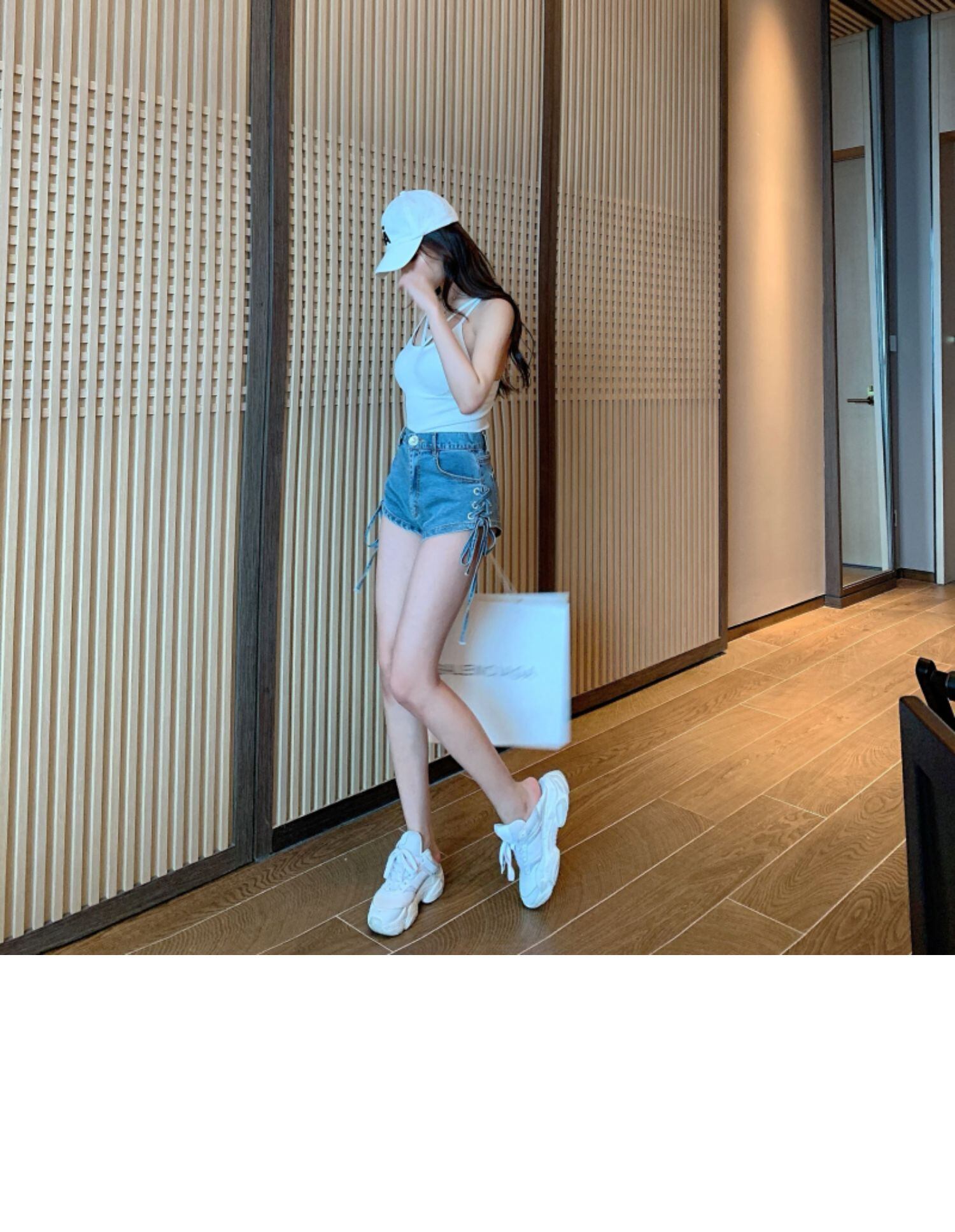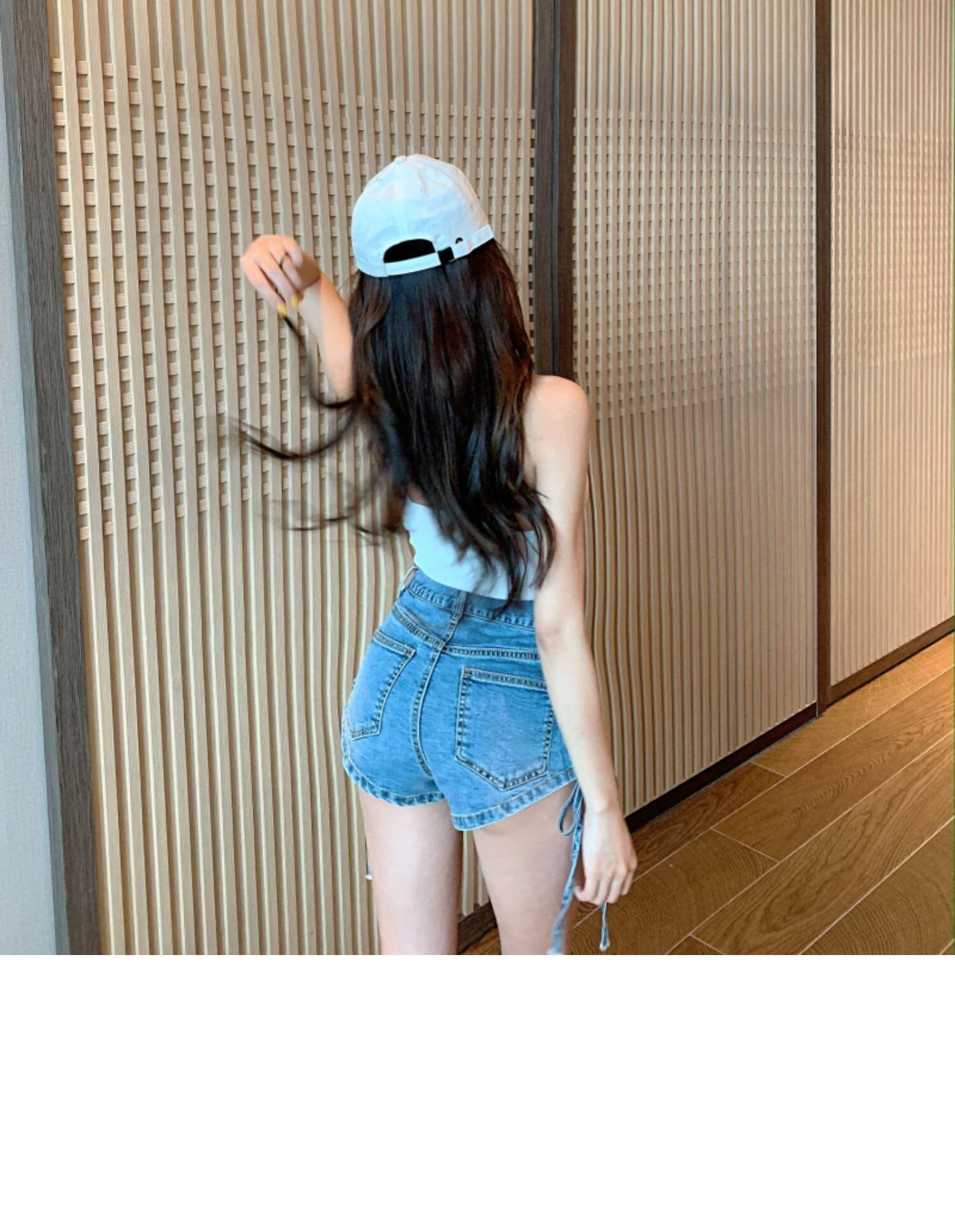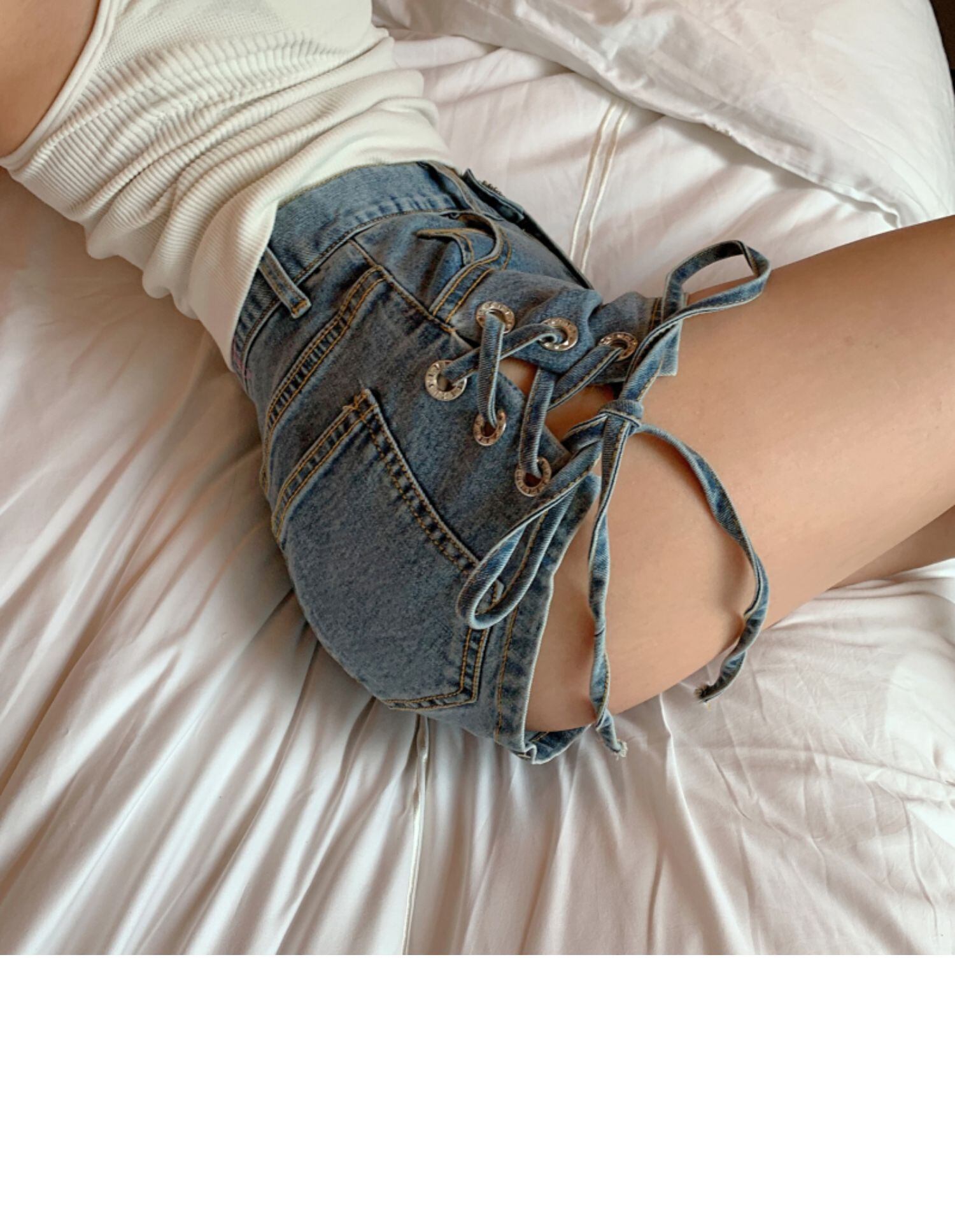 サマーリボンショーツ バックルハイウェストウェスト薄手Aラインパンツ 夏物 ブルマー ドラファッションホール5148937407
