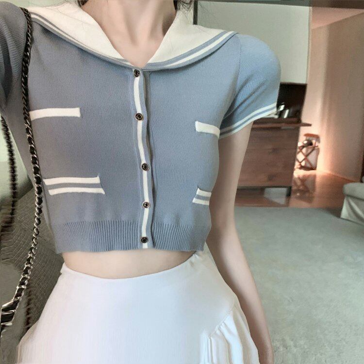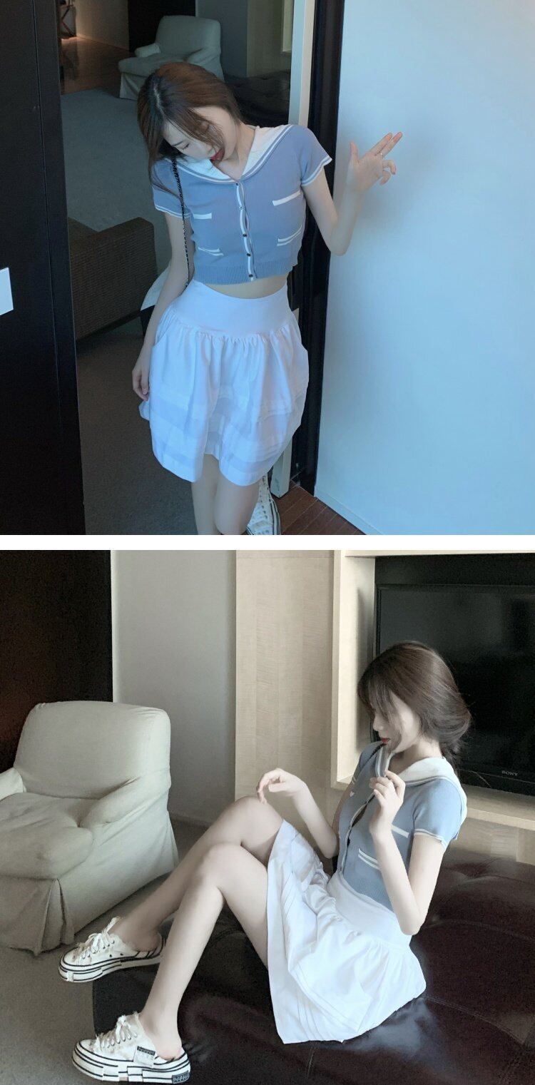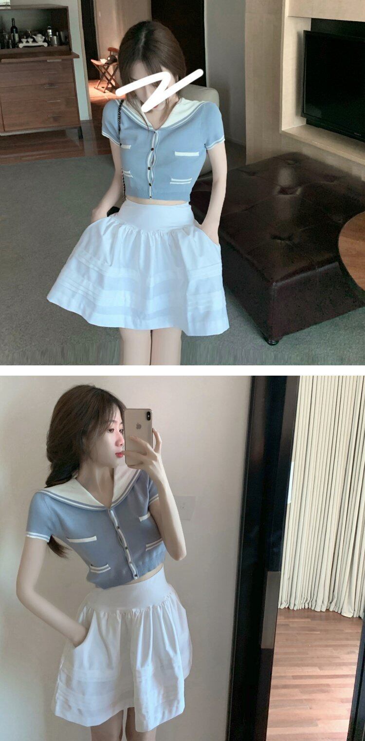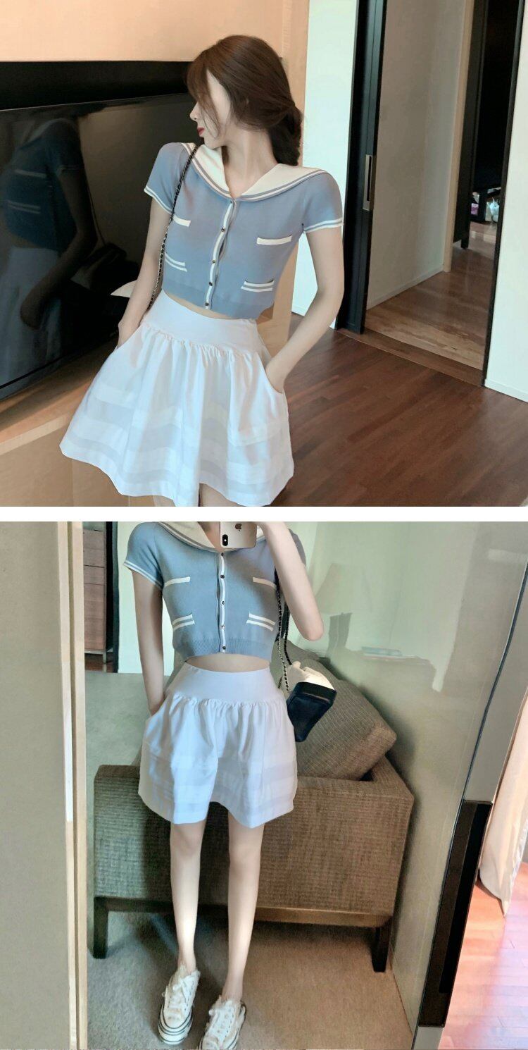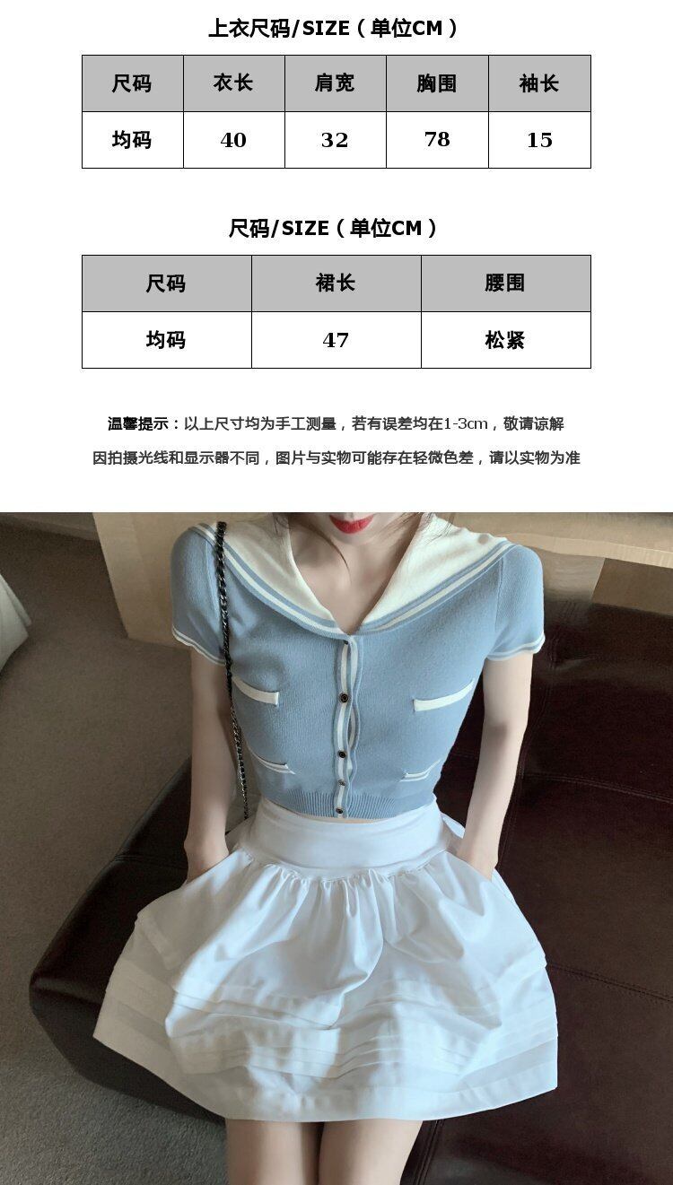 オータムショートニットカーディガントップス ハイウェストウェストFlowerデザイン スカート 秋物 フラワーデザイン ドラファッションホール45661741916