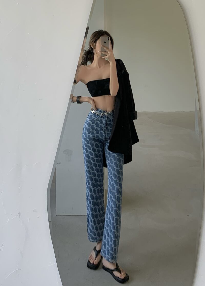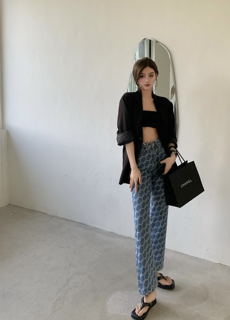 スタイルルーズハイウェストウェストパンツ ジーンズ サマー 夏物 ドラファッションホール89748080307