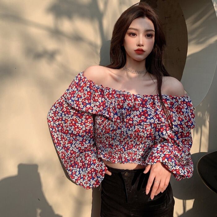 スタイルサマースリーブフローラルブラウス レディース ランタンスリーブ 大人ガーリー スウィート キュート カジュアル 夏物 花柄 ドラファッションホール85316561340