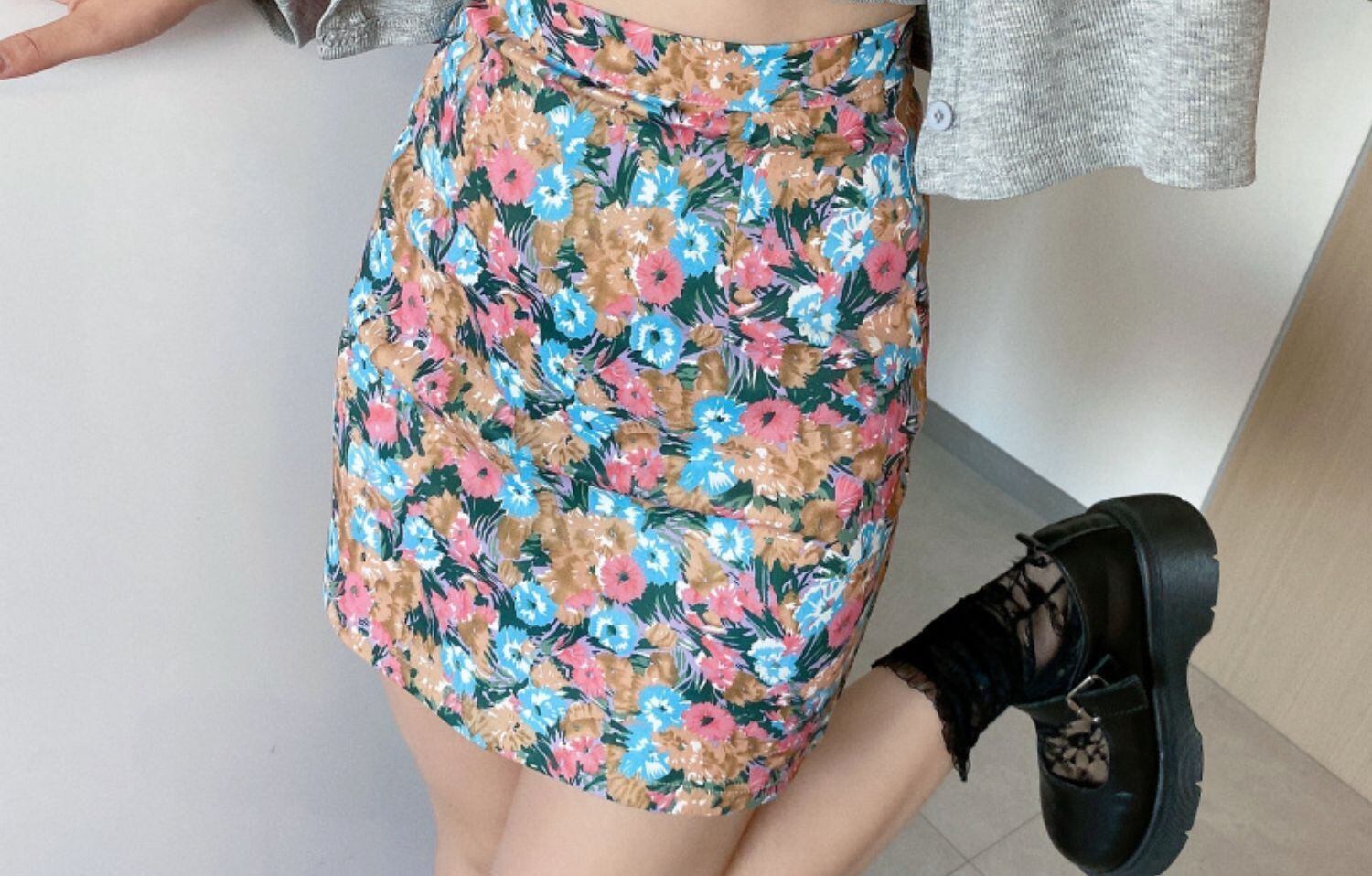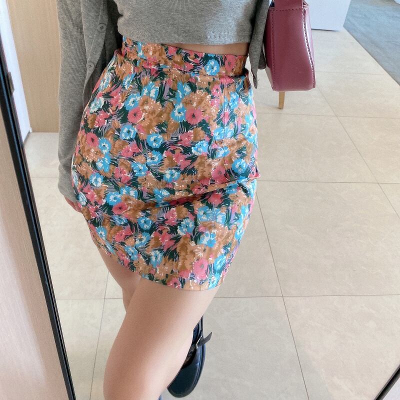 スタンダードフローラル薄手Aラインハイウェストウェストスカート サマーカジュアル レトロ 夏物 花柄 ドラファッションホール14143637165