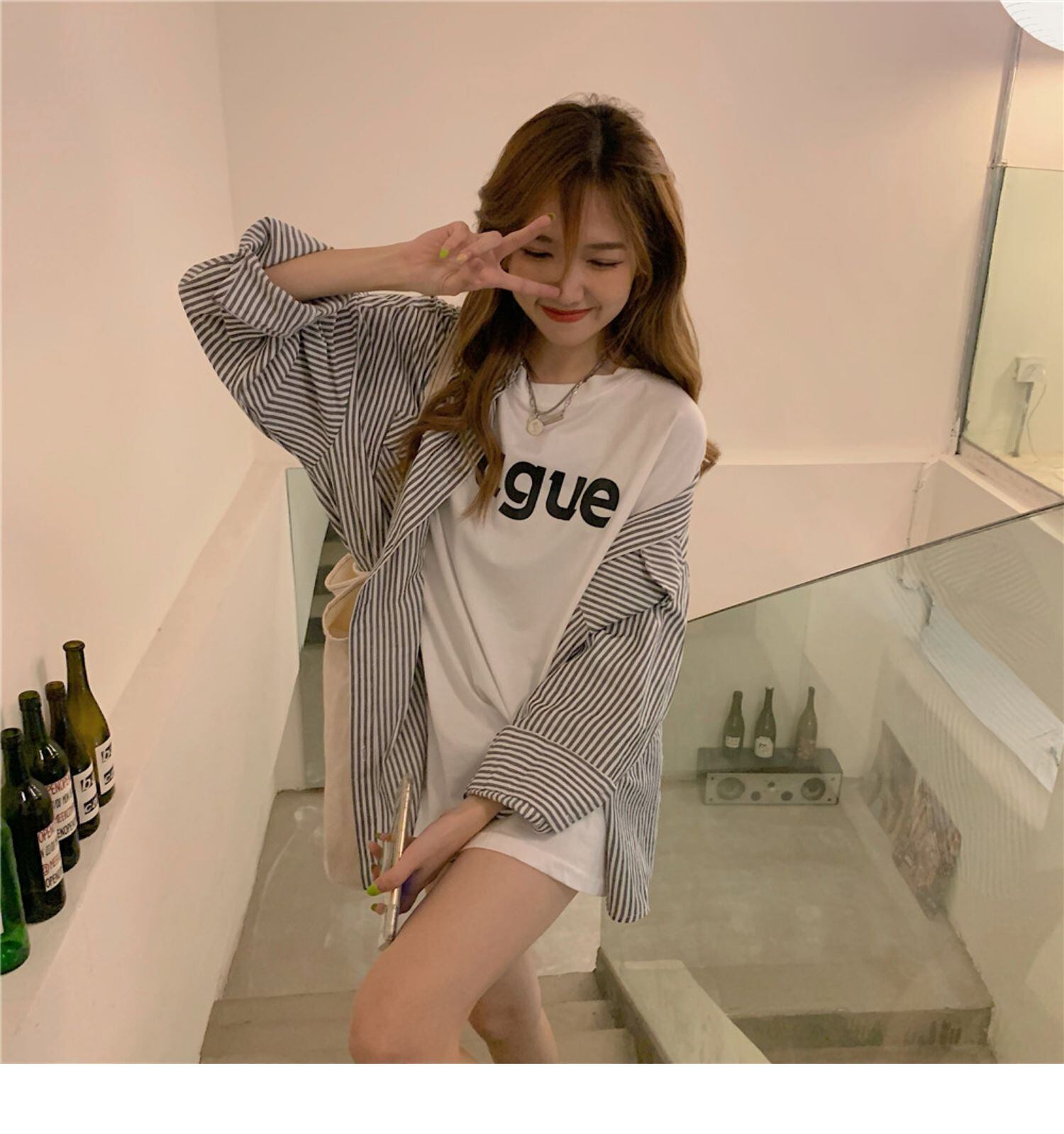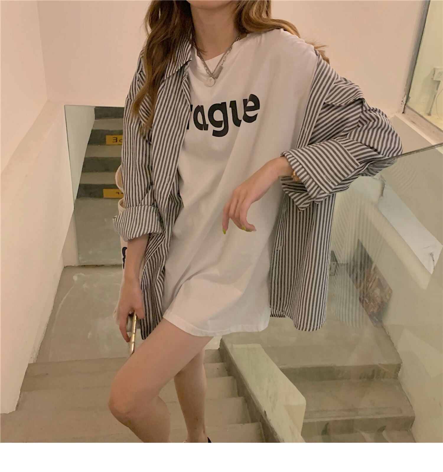 カジュアルサマールーズストライプシャツ Tシャツ トップス 夏物 ドラファッションホール7384290569