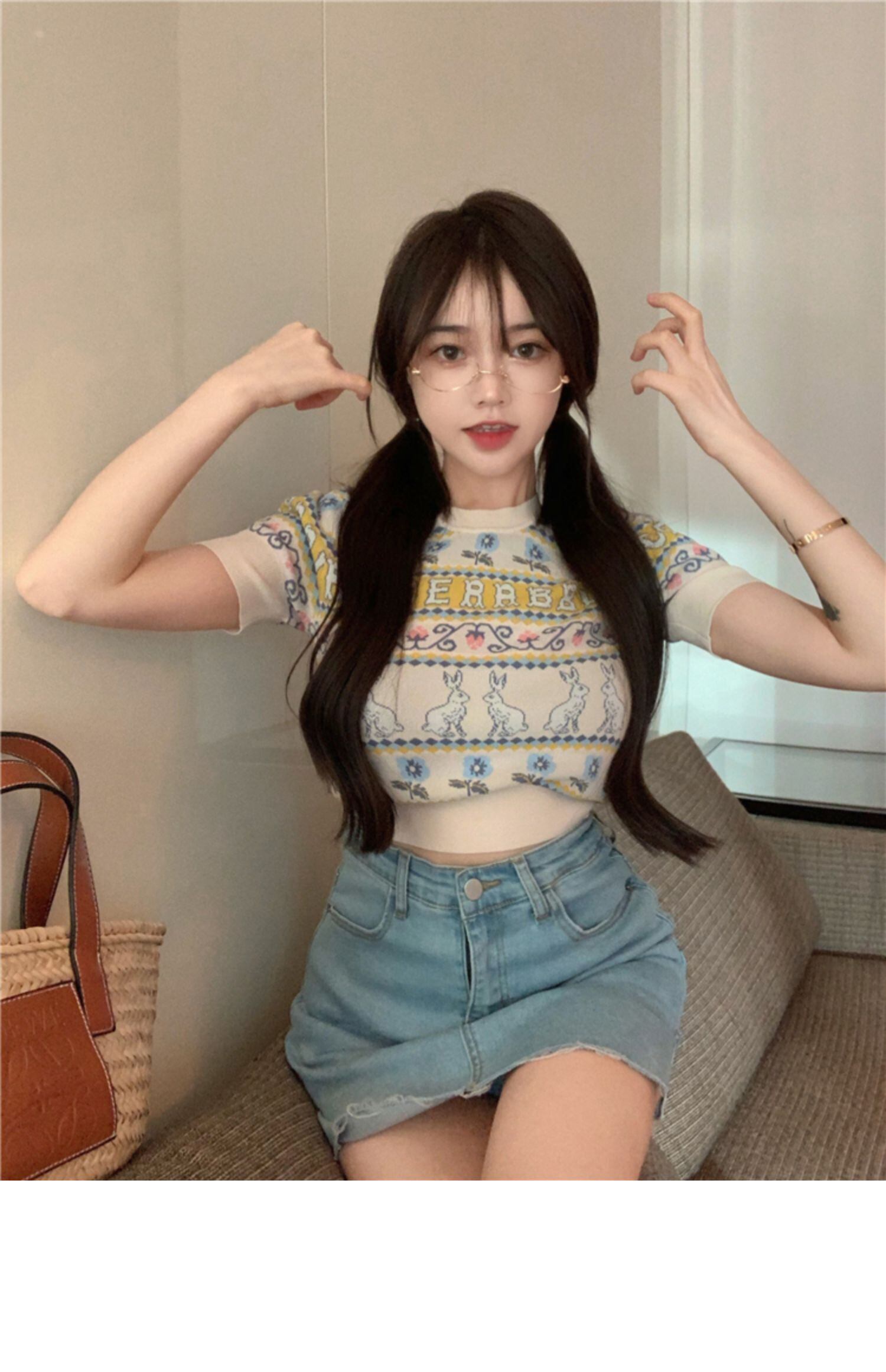 サマースタンダードレッドハイウェストウェスト薄手ショートトップス スタイルセーター レディース レトロ 夏物 シルク ドラファッションホール46129477849