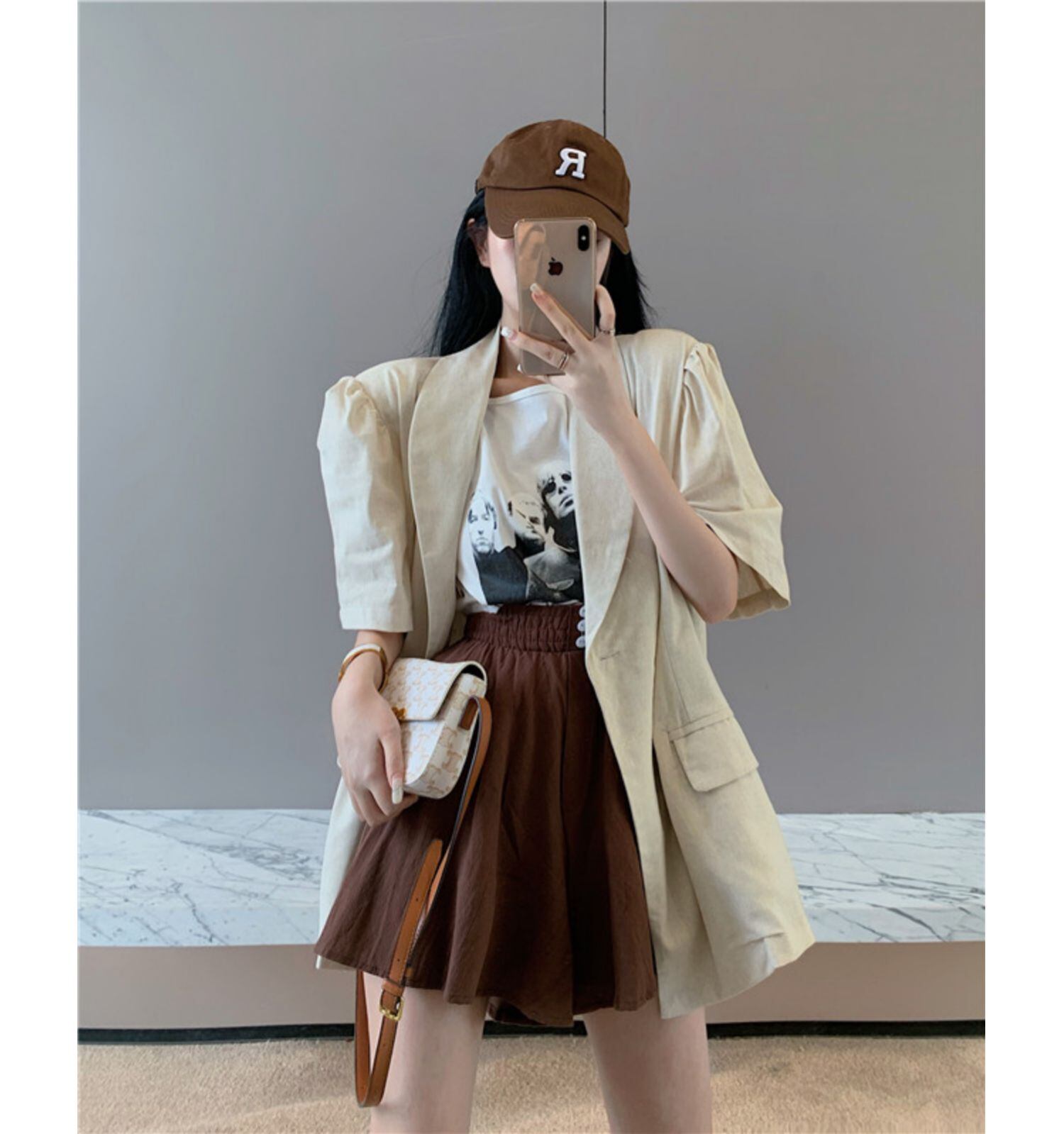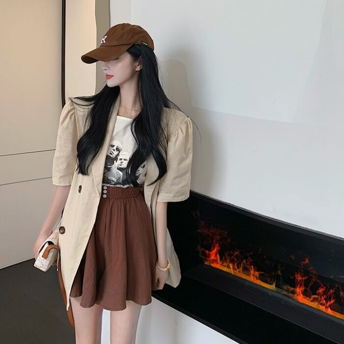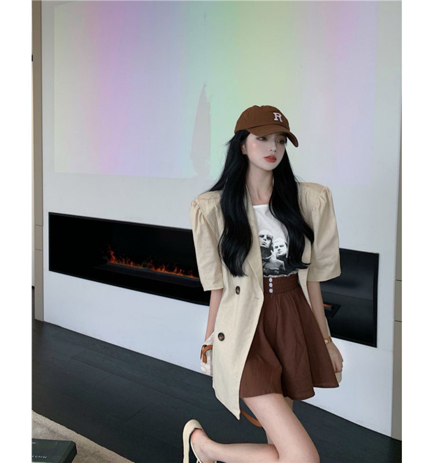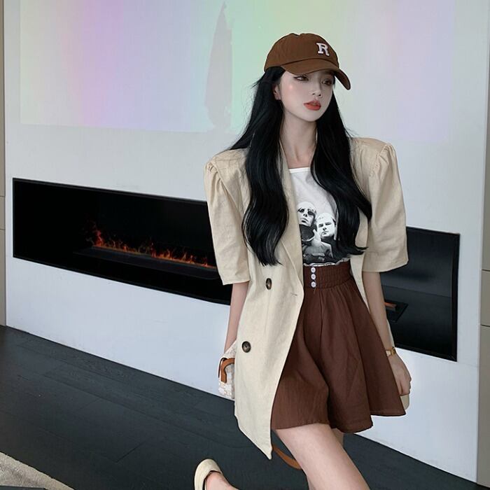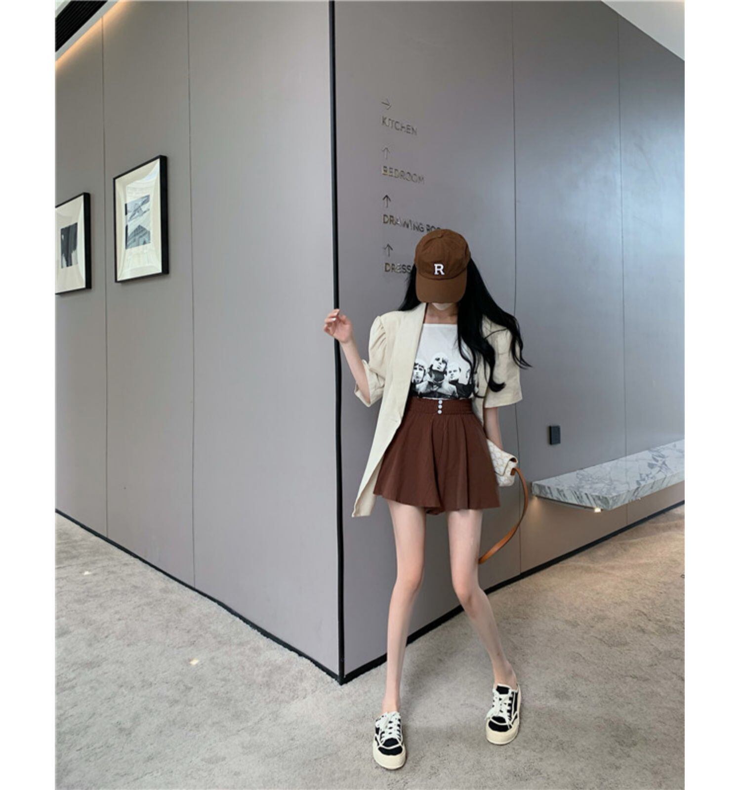 色:アプリコットスーツ,白いベスト,コーヒーカラーショーツ