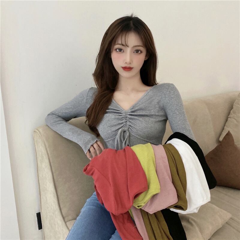 ギャザーVネックスリムシャツ Tシャツ レディース ロング ドラファッションホール1355871221