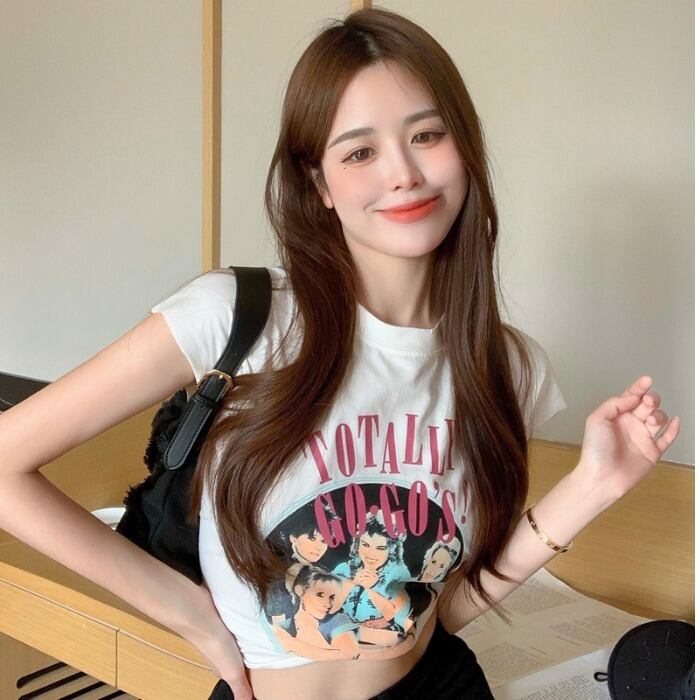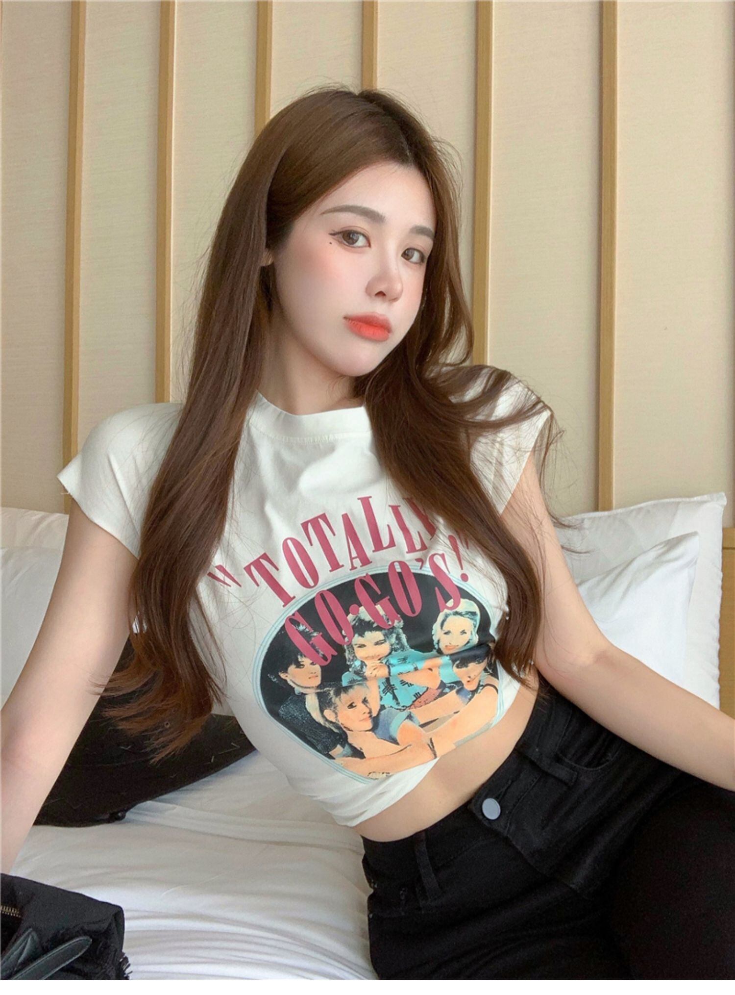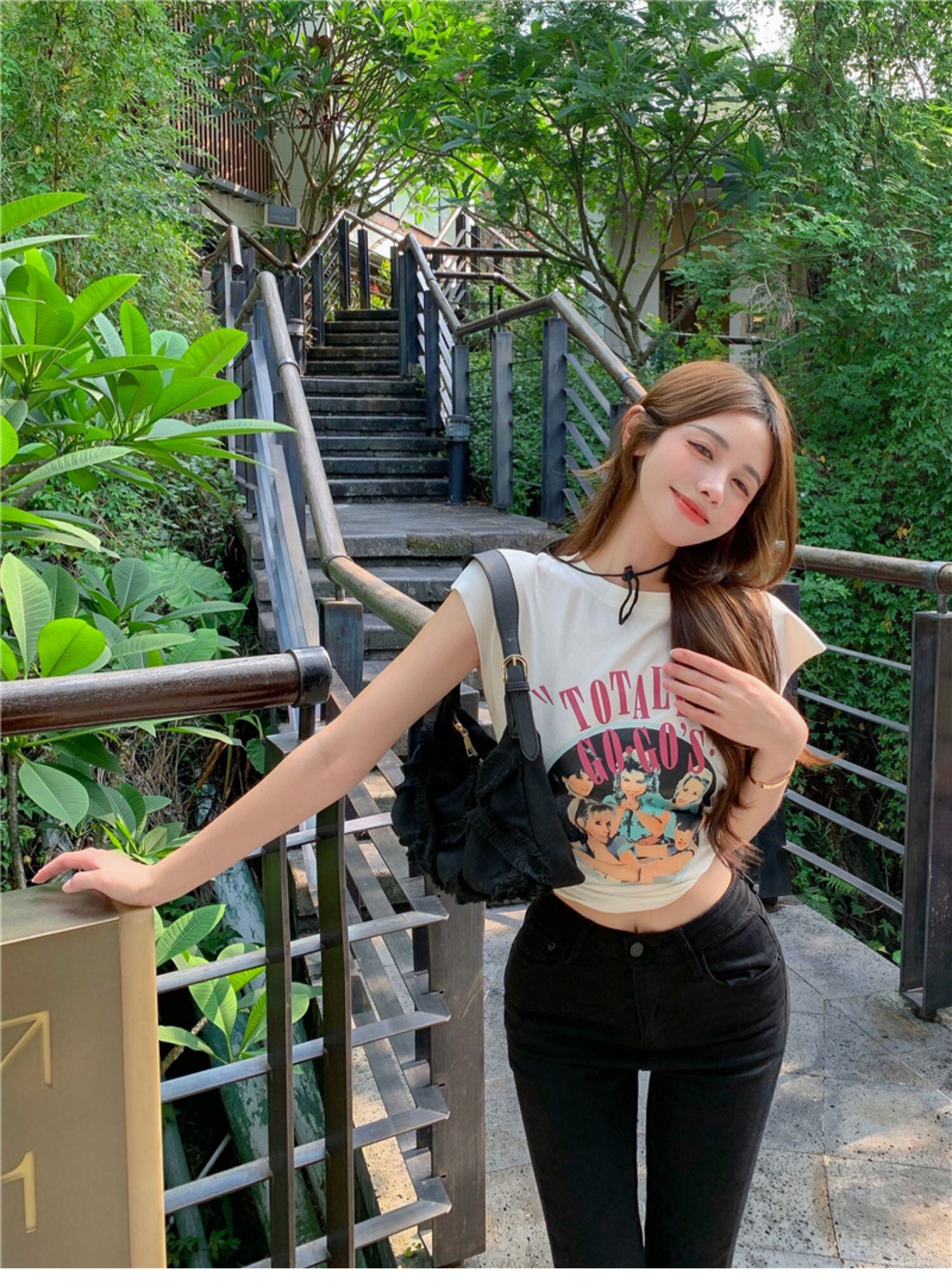 スタンダードプリント柄ルーズスリムノースリーブTシャツ トップス サマー レトロ 夏物 ドラファッションホール61648631776
