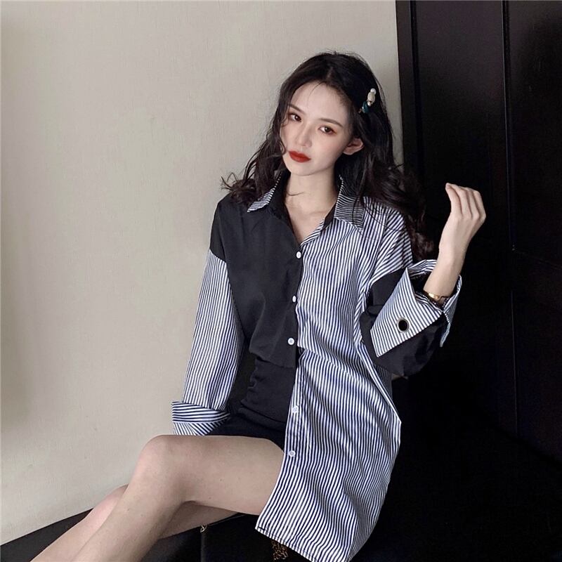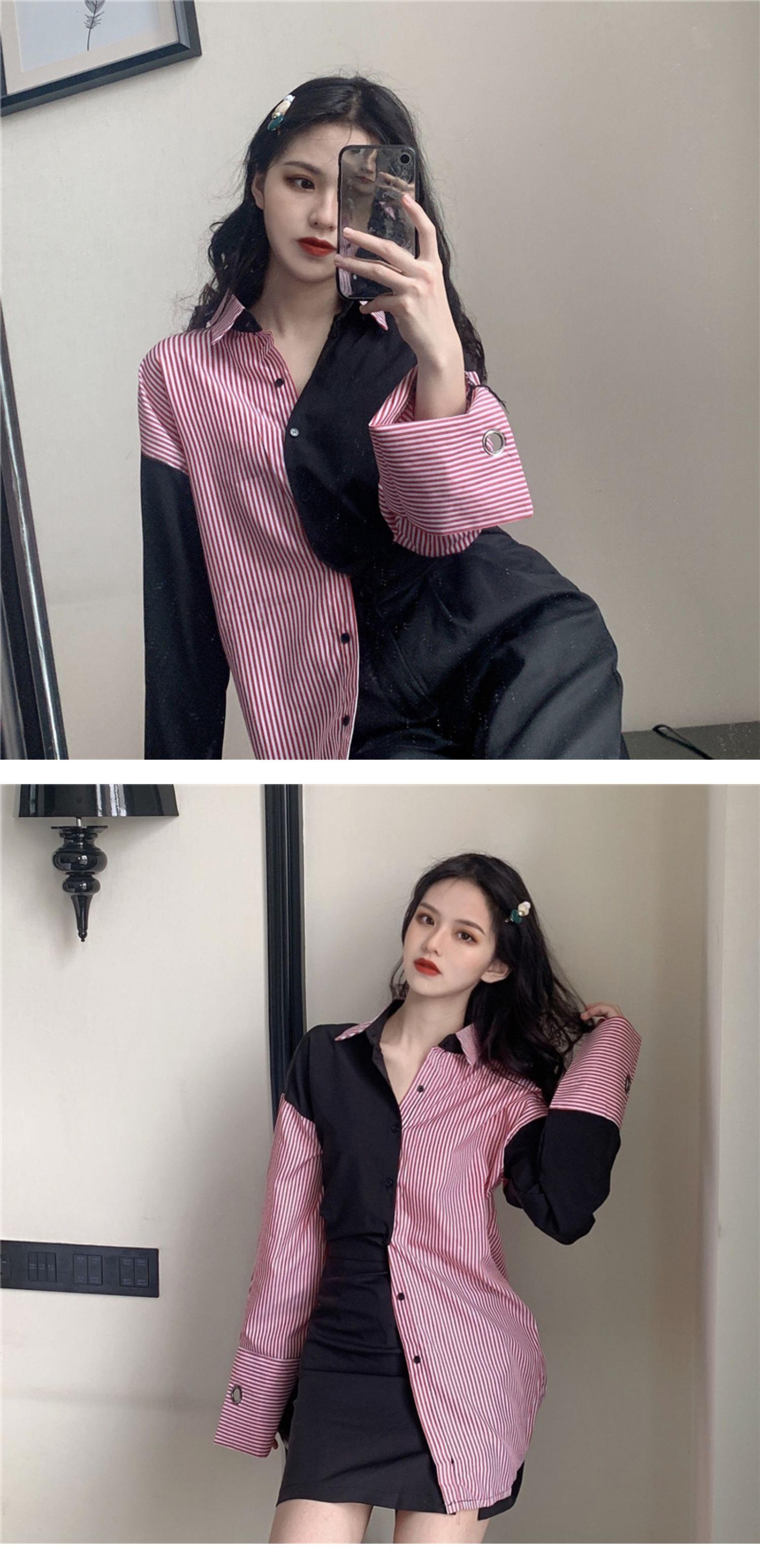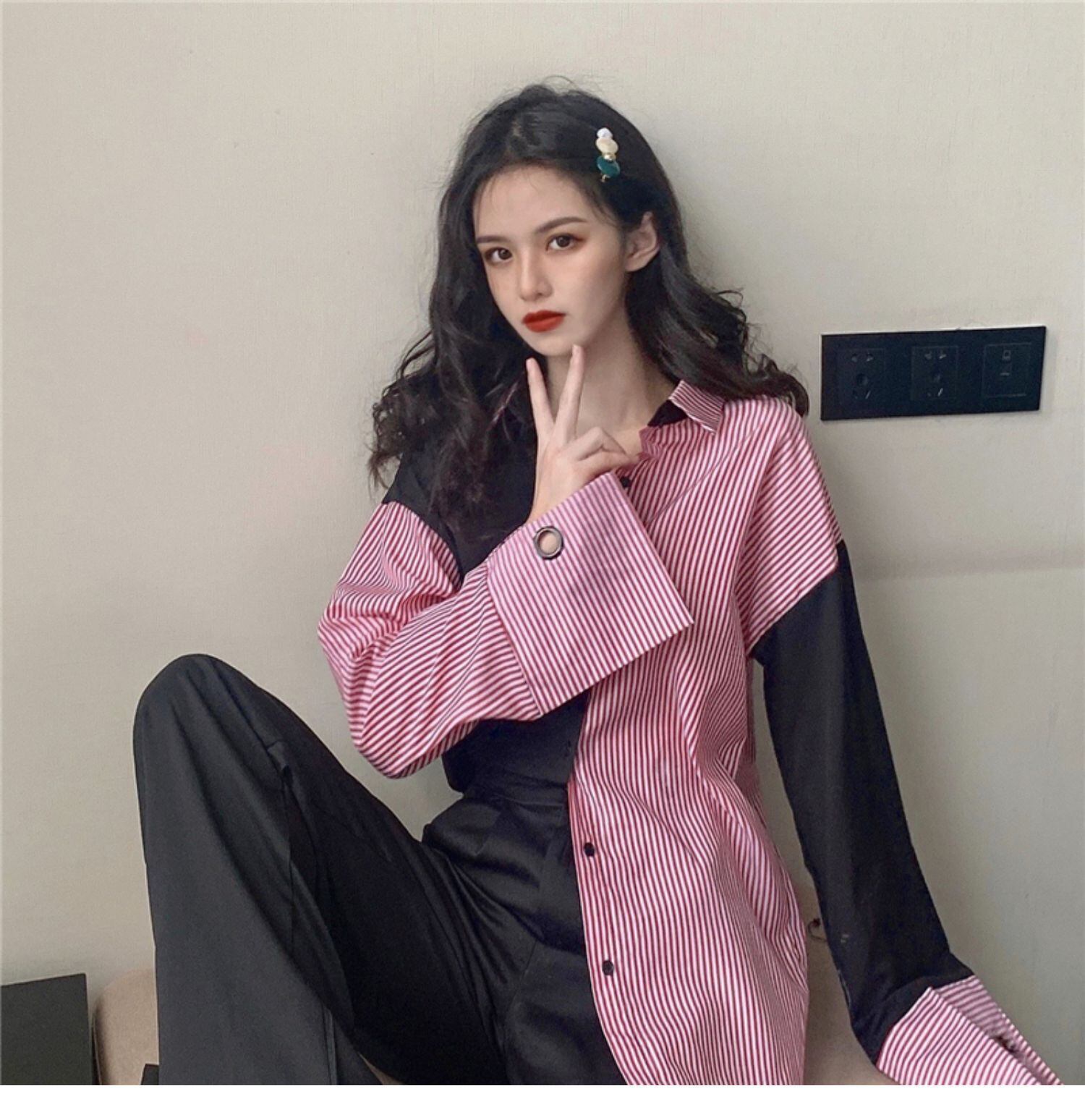 ストライプシャツ ルーズリング レーススプリング ロング 春物 指輪 ステッチ ドラファッションホール37544394447