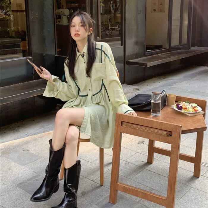 スタイルルーズカジュアルシャツ ドレス サマー 夏物 ドラファッションホール1631768386