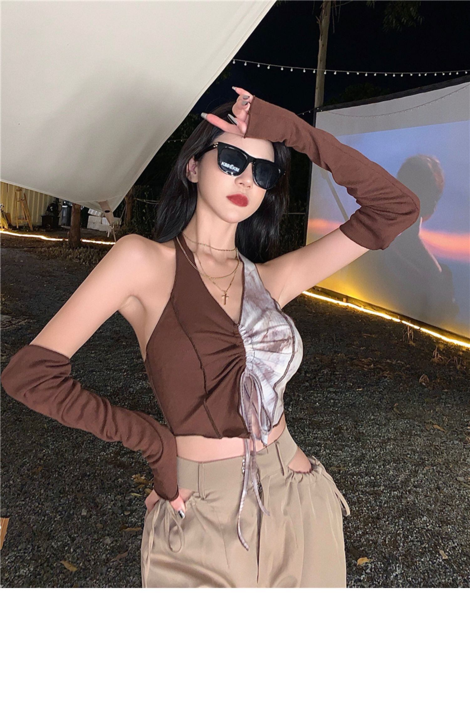 サマースタイルショートトップス レディースストラップレススリーブ 夏物 ドラファッションホール36112226854