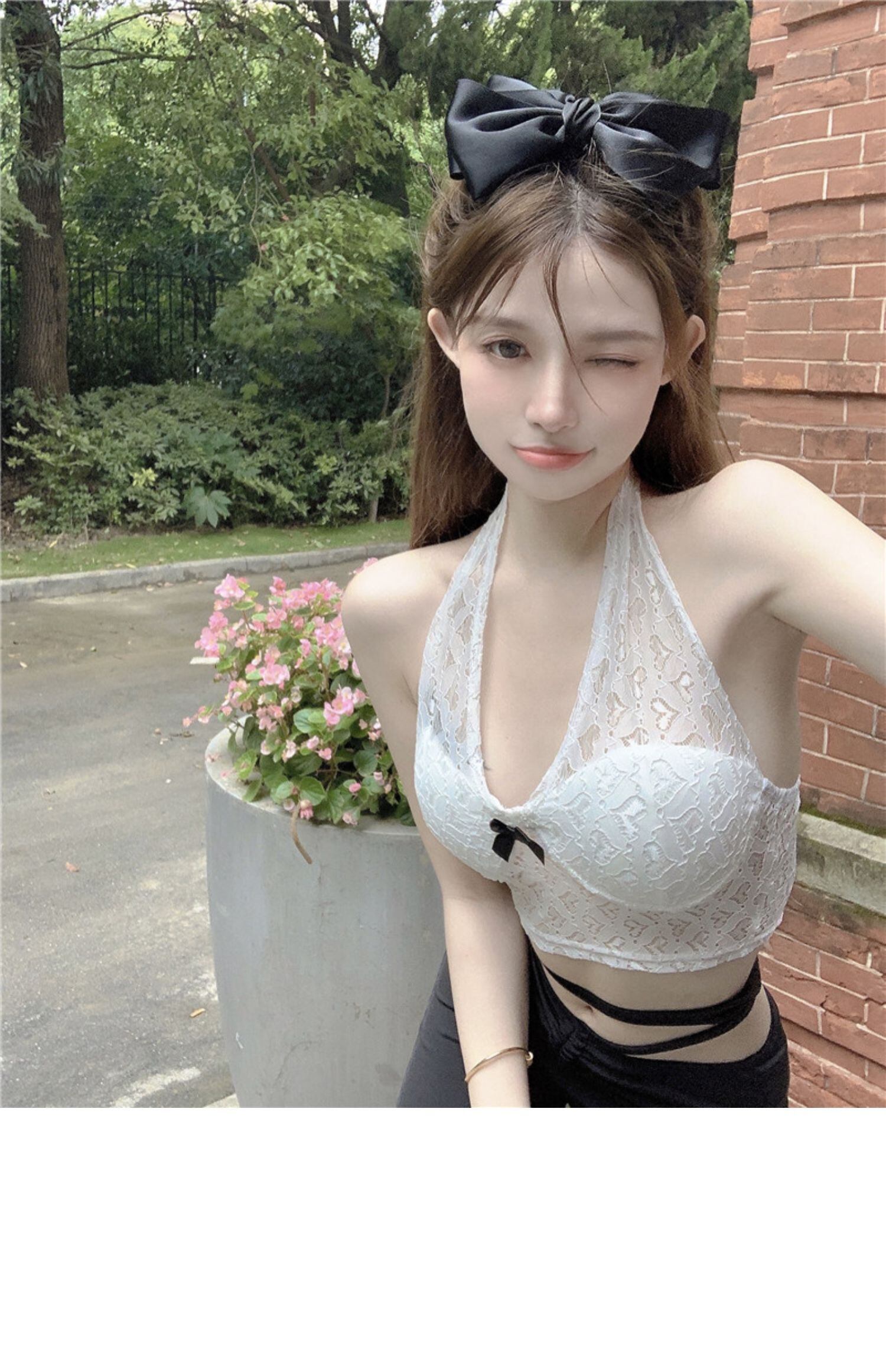 サマーレースリボンバックショートトップス レディース 大人ガーリー スウィート キュート カジュアル 夏物 ドラファッションホール64385571151