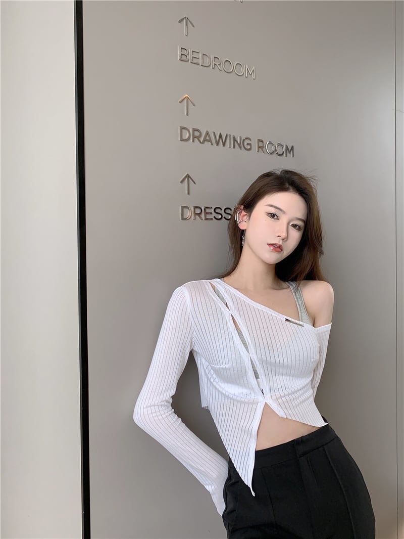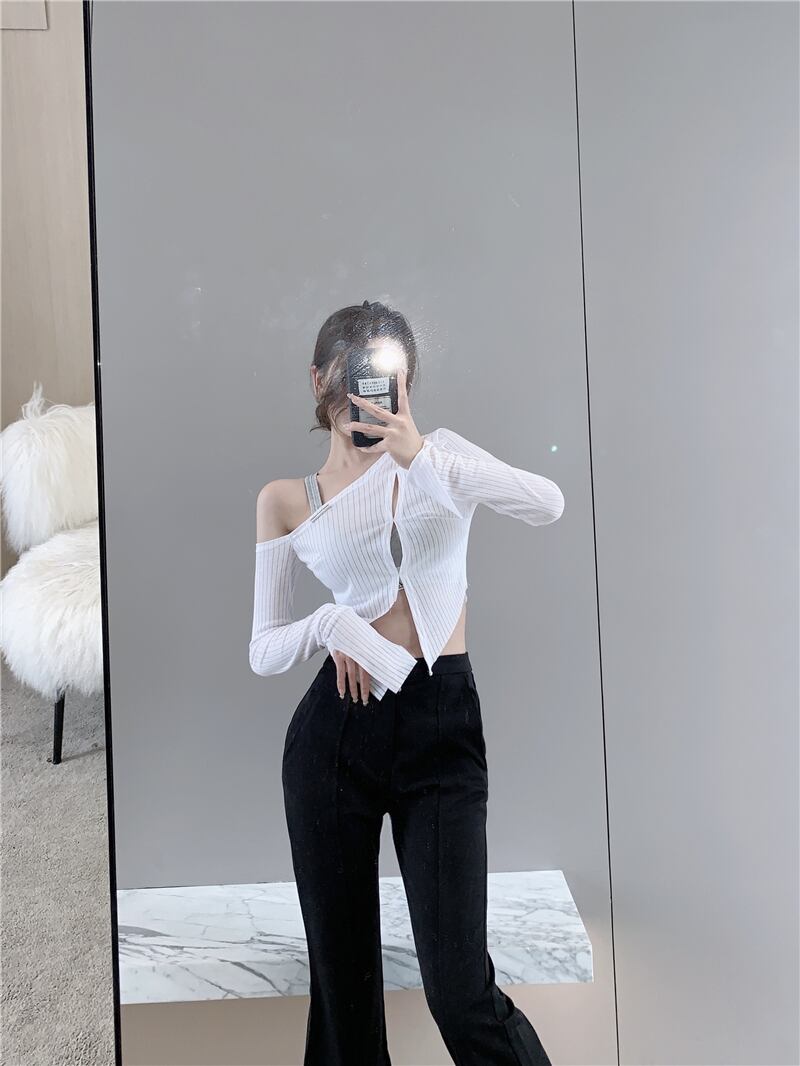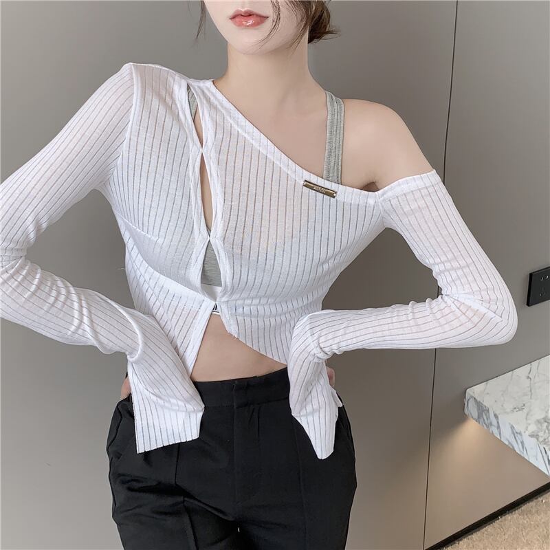 スタイルスリットTシャツ トップス レディースサマー薄手 ロング 夏物 オフショルダー ピュア ドラファッションホール93184243213
