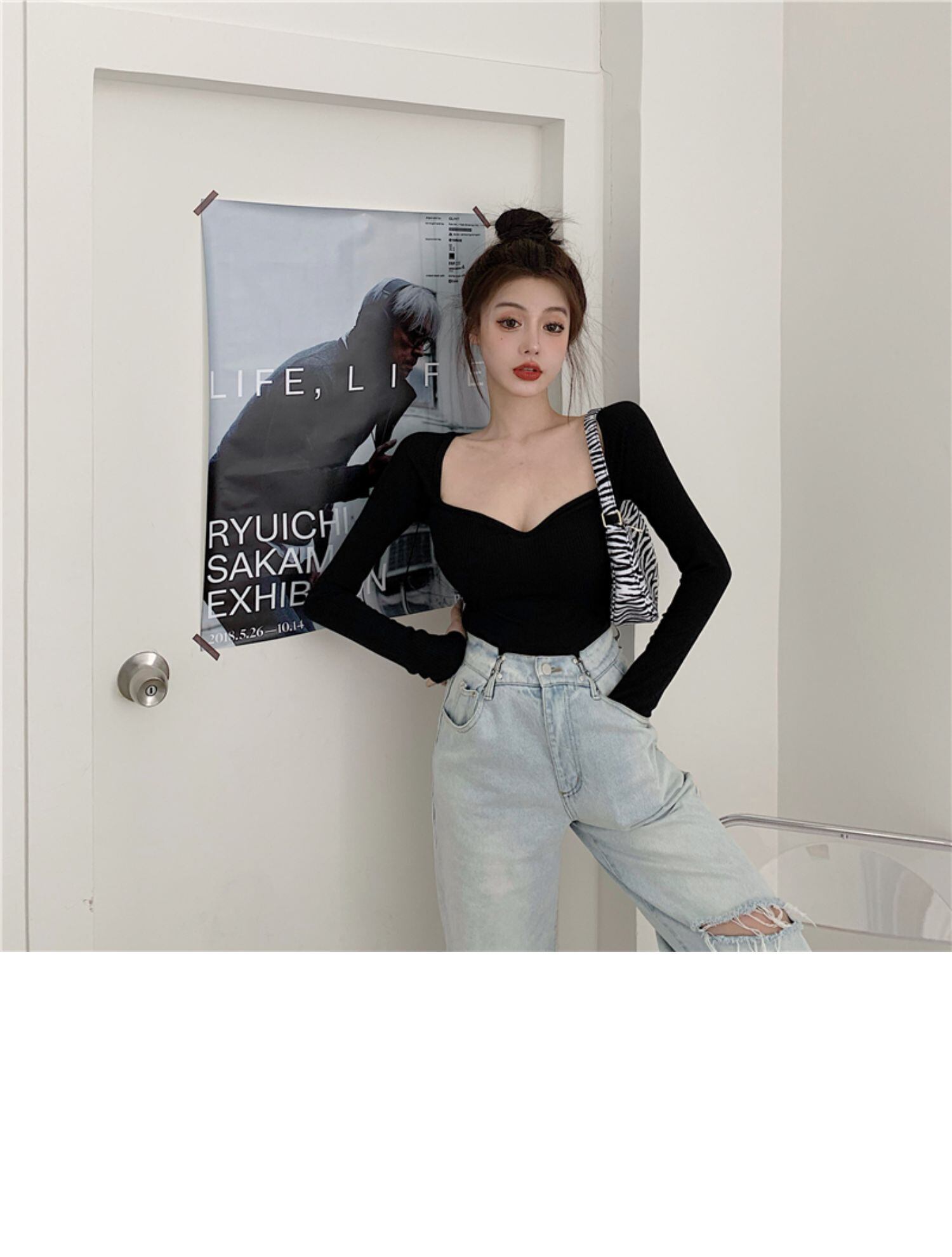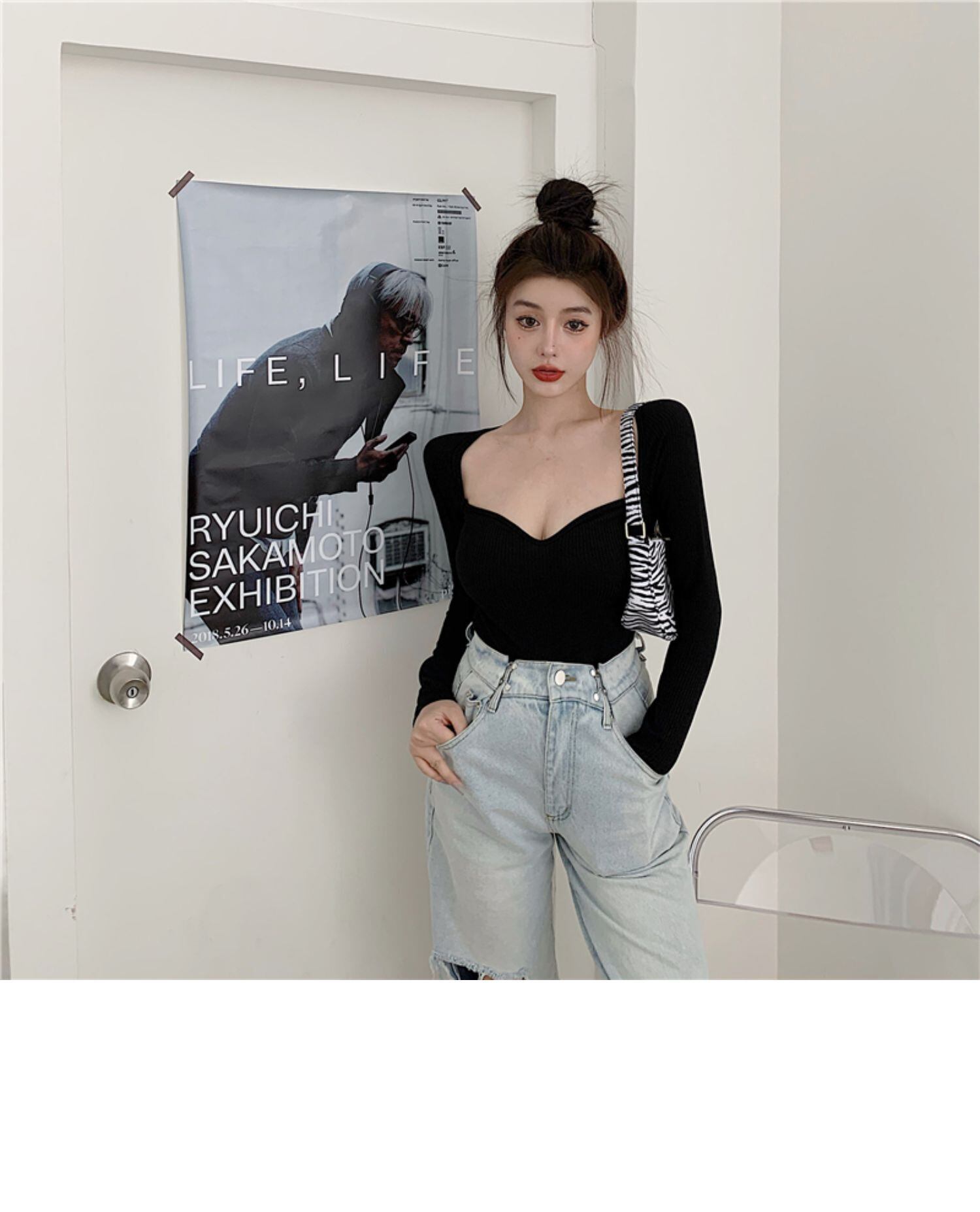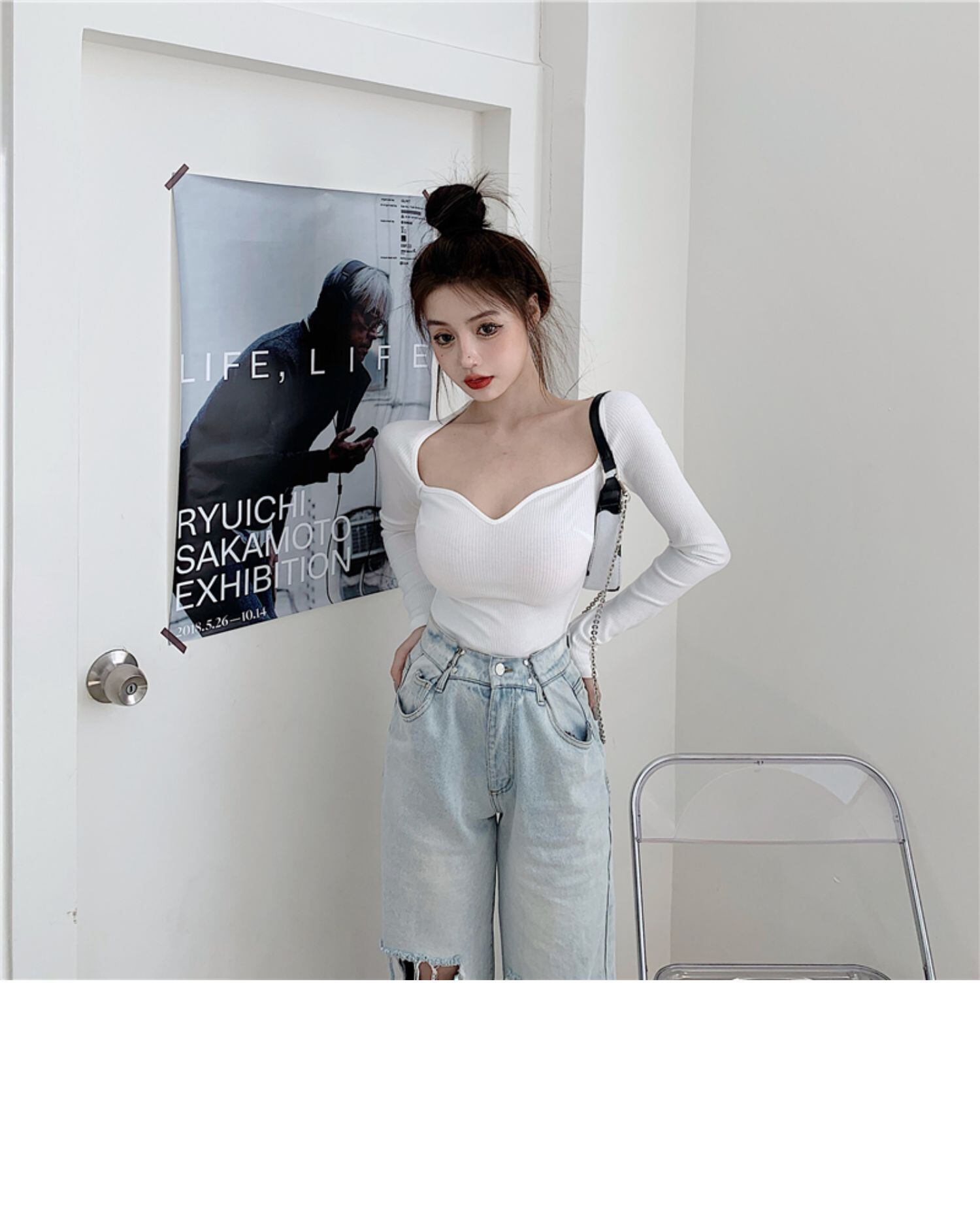 スタンダードカラースリム長袖スリーブTシャツ レディース ロング レトロ ピュア スクウェア ドラファッションホール60482591698