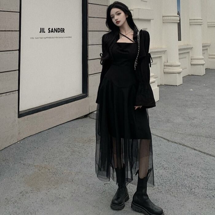 色:黒いシャツ),ブラック(サスペンダードレス)