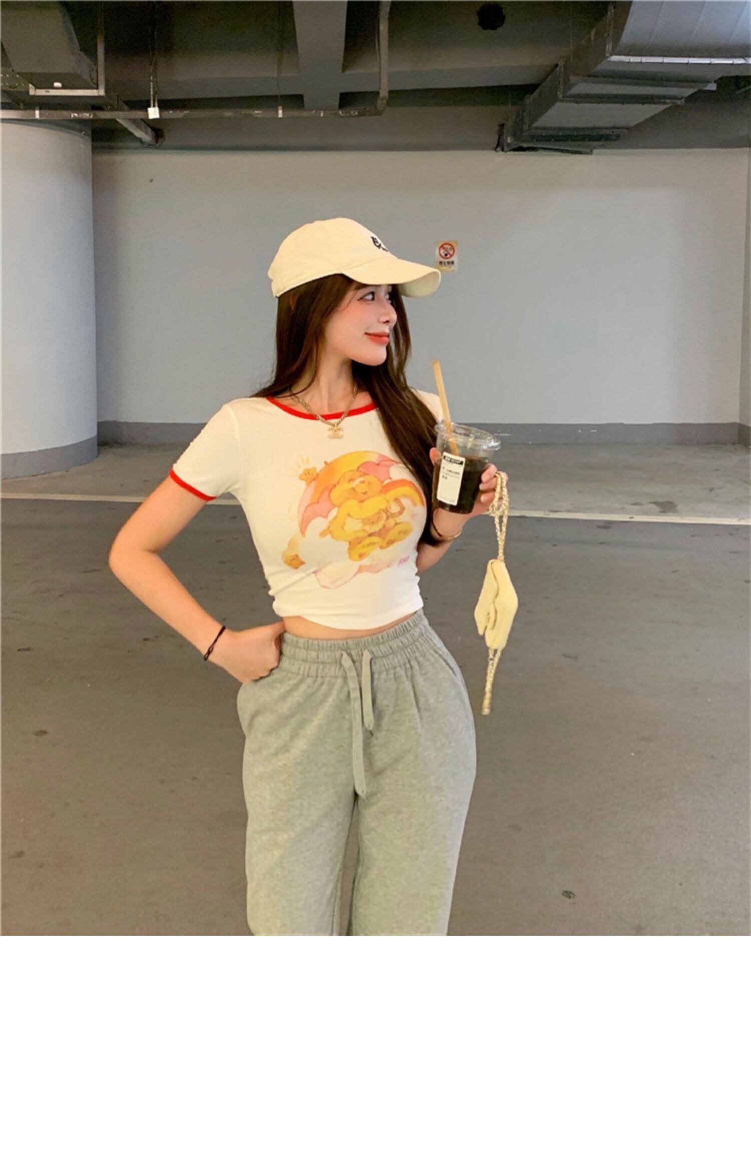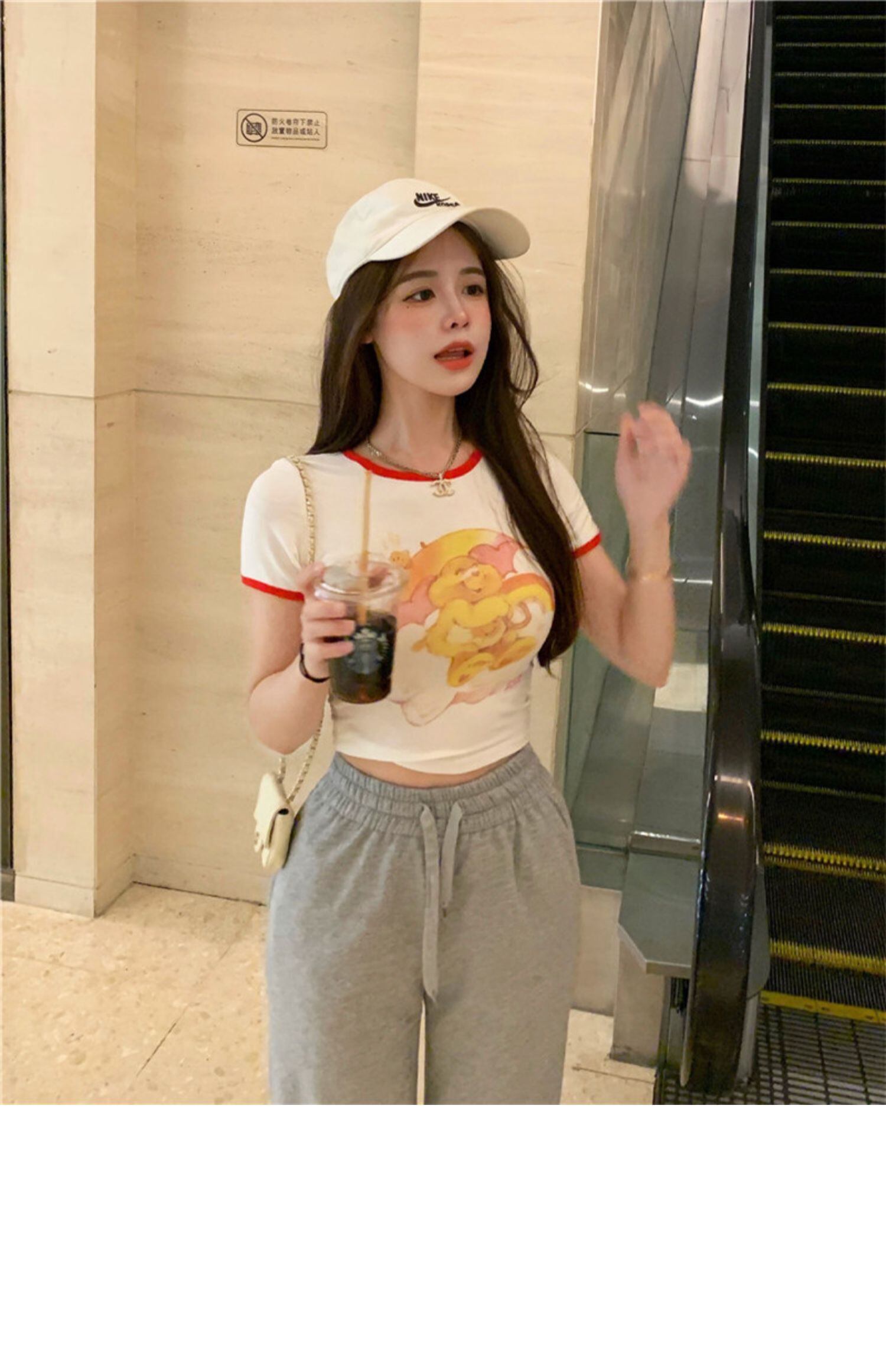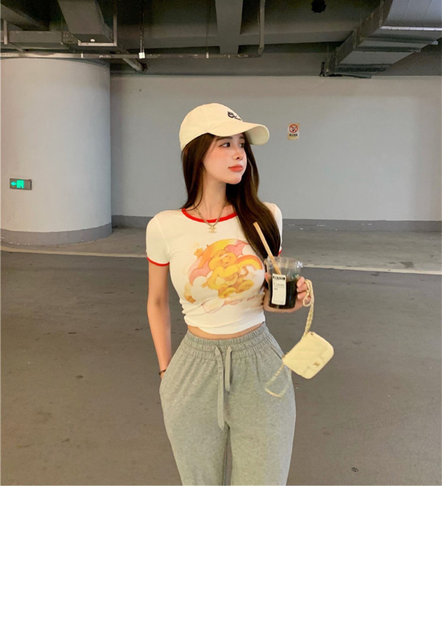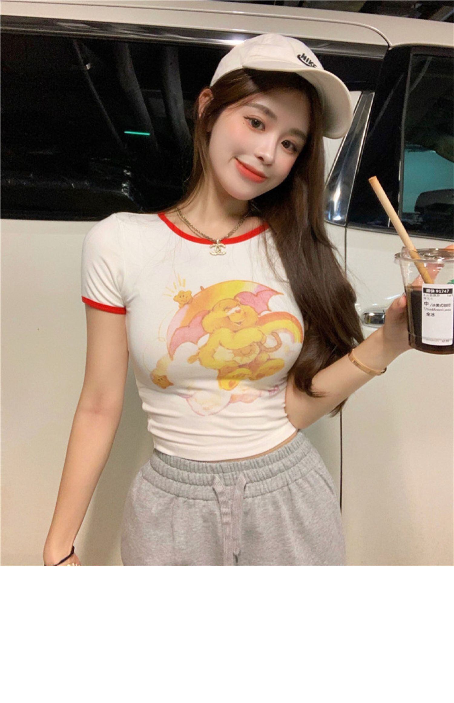 サマースリムショートハイウェストウェストレッドトップス プリント柄半袖スリーブレディース ハーフスリーブ 夏物 ドラファッションホール59077180446